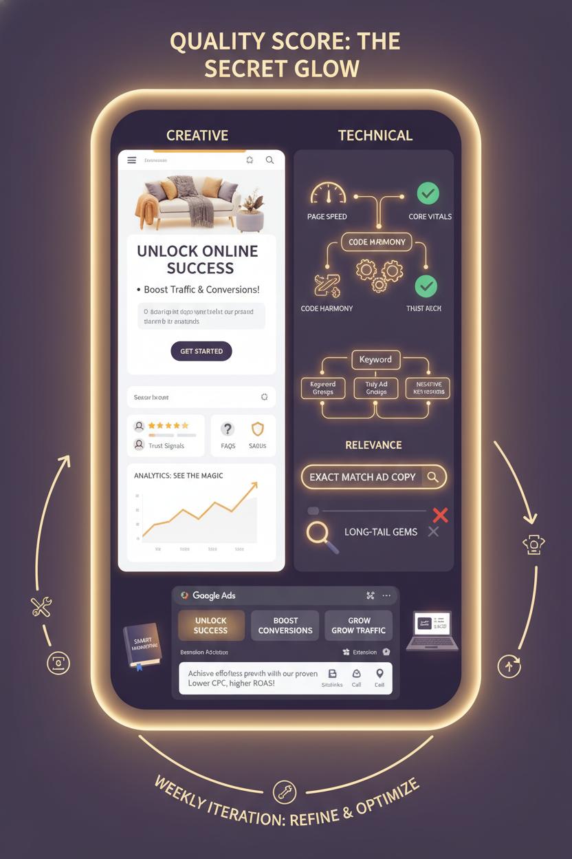 Think of Quality Score as the warm, secret lighting behind every gorgeous pin: it makes everything look better and perform better. Start with the landing page—the cozy destination your ad promises. Keep message match tight so the headline echoes the exact promise from your Google Ads copy, and tuck the primary benefit above the fold like a neatly styled throw blanket. Make it fast, mobile-perfect, and easy to skim with generous white space, scannable subheads, and a single, friendly call to action. Sprinkle in social proof, FAQs, and clear trust signals to help visitors exhale and click forward. Use analytics software to watch where people linger and where they bounce, then trim the clutter. Page speed checks from your favorite SEO tools and core vitals diagnostics can turn “almost there” into “oh wow.” This is where creative meets technical: the right imagery, the right wording, and the right code all working together in your broader digital marketing story.