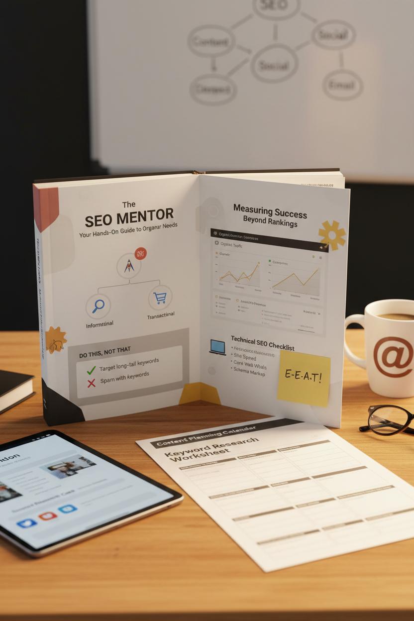 The right read will also help you connect dots across digital marketing, so you aren’t optimizing in a silo. Seek chapters that show how content planning, social cues, and email nurturing support rankings, almost like a content marketing guide tucked inside. You’ll want guidance on setting goals and measuring progress with website analytics software, not just rankings but conversions and assisted revenue, so you can see precisely how optimizations boost website traffic and business outcomes. Up-to-date sections on algorithm shifts, E-E-A-T, and local/mobile nuances keep you future-ready, while a practical SEO audit tool checklist helps you run quarterly health checks without panic. If the author is transparent about testing, cites sources, and updates frequently, that’s gold. And when a book pairs concepts with tool-agnostic workflows—comparing keyword difficulty, mapping topics to intent, prioritizing technical fixes by impact—you’ll feel confident moving from the page to your platform. In short: choose a resource that feels cozy yet credible, rich with examples you can mirror, and aligned with the strategy you started in the infographic, so learning turns into results you can see in search engine optimization metrics and beyond.