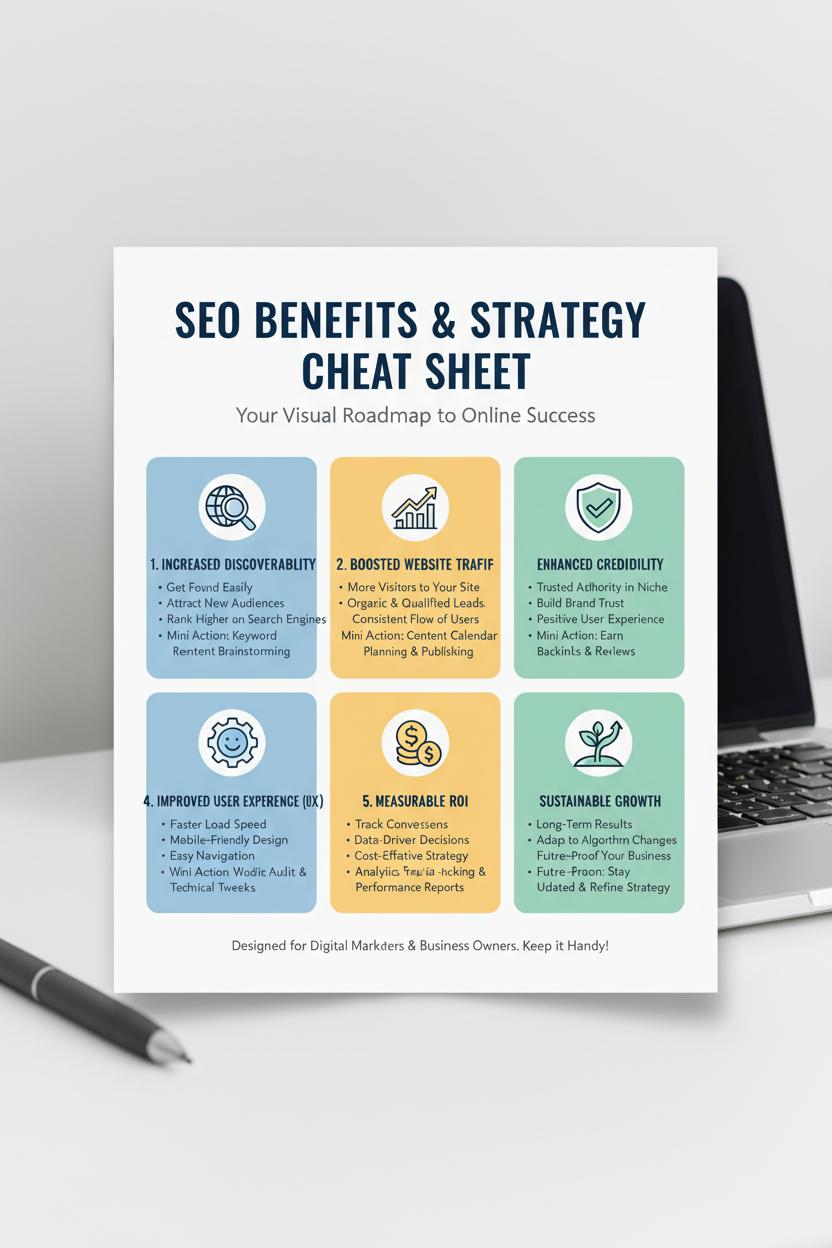 If you’re new to search engine optimization, think of it like styling a gorgeous gallery wall for your brand—everything should be easy to find, beautifully arranged, and totally clickable. As you skim our SEO benefits infographic, notice how small tweaks add up to big wins: clear page titles, descriptive meta descriptions, fast-loading images, and internal links that guide visitors from one helpful page to the next. These aren’t flashy hacks; they’re steady, sustainable habits that boost website traffic by helping search engines understand what your pages are about and why they deserve to be seen.