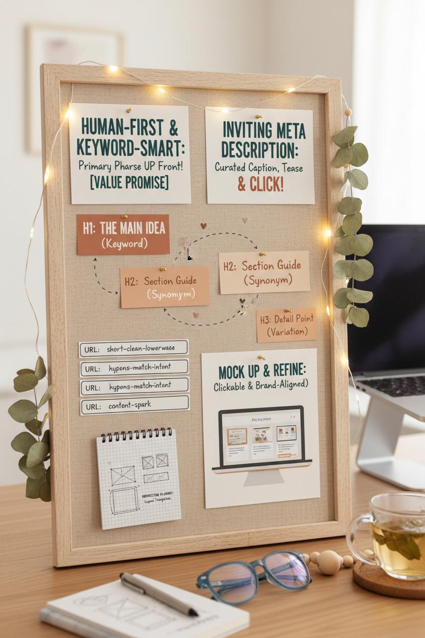 Titles should be human-first and keyword-smart, with your primary phrase up front, a promise of value, and no fluff. Keep meta descriptions inviting and specific—like a curated caption that teases the outcome and sparks a click. Structure headers from H1 down to H3 like a storyboard, using them to guide the eye and clarify sections, and sprinkle synonyms naturally. For URLs, go short and clean: lowercase, hyphens, and words that match the page intent. If you’re unsure which phrases deserve top billing, lean on keyword research tools and skim a few SEO books to refine your instincts. As you refine, check how each element reads out loud; if it flows like a friendly recommendation, you’re close.