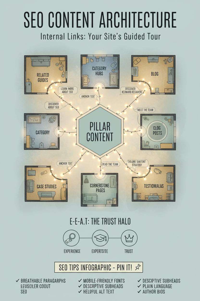 Think of internal links as those sweet little string lights you drape across a gallery wall—they guide the eye and connect moments. Inside your posts, link to related guides, category hubs, and cornerstone pages with anchor text that actually describes what’s on the other side. This isn’t just tidy on-page SEO; it’s reader-friendly wayfinding that spreads authority across your site. Audit for orphan pages, thread them into relevant clusters, and let your most useful resources become mini “homes” that visitors and crawlers naturally gravitate toward. In our SEO graphic and the companion SEO tips infographic, we map this like a floor plan: pillar content in the center, supporting posts branching off like cozy rooms you can wander through.