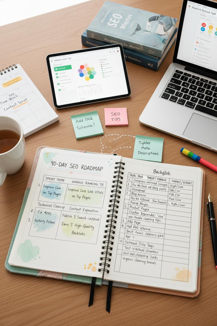 When your SEO to‑dos feel like confetti in the wind, bring them into focus with sprints and a simple roadmap. I like to treat my SEO planner as the cozy command center—somewhere between a calendar and a scrapbook—where strategy meets real life. Start by sketching a 90‑day roadmap with three sprint themes: technical clean‑up, content expansion, and authority building. Each two‑week sprint gets a clear goal tied to google ranking, like “improve Core Web Vitals on top pages” or “publish three search‑intent‑matched posts.” It’s a gentle rhythm that keeps search engine optimization moving forward without derailing your week.