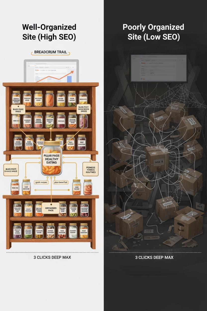 Think of your site like a beautifully organized pantry: every shelf has a theme, every jar is labeled, and you can reach everything in a couple of steps. That’s exactly how your internal links and site structure should feel to visitors and to crawlers. In search engine optimization, a tidy architecture helps Google understand what each page is about and how it fits into your bigger story, which can nudge your google ranking upward. Start with topic clusters: one pillar page that sums up a theme, surrounded by related posts that link back to it and to each other. Use clear, descriptive anchor text—no vague “click here”—so both readers and bots get the context instantly. Keep your navigation simple, add breadcrumb trails, and avoid burying content more than three clicks deep. As you plan content, let keyword research guide your categories and subtopics, then weave strategic internal links into your on-page seo elements like headings, intros, and calls to action.