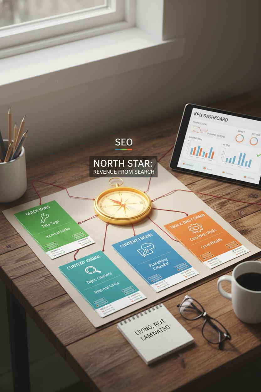 Think of your roadmap as the cozy, color‑coded plan that turns scattered SEO tips into a focused journey. Start by choosing a north star that actually matters to your business—maybe it’s more qualified organic sessions, more email signups, or revenue from search—and then stack your projects under that outcome. List everything on your plate across search engine optimization: quick on-page SEO fixes, fresh content ideas, technical cleanups, and link opportunities. Then score each item by impact and effort so you can chase the high‑impact, low‑effort wins first. Often that means tuning title tags and meta descriptions on pages that already rank on page two, improving internal links to money pages, and refreshing older posts with better keyword research and richer answers.