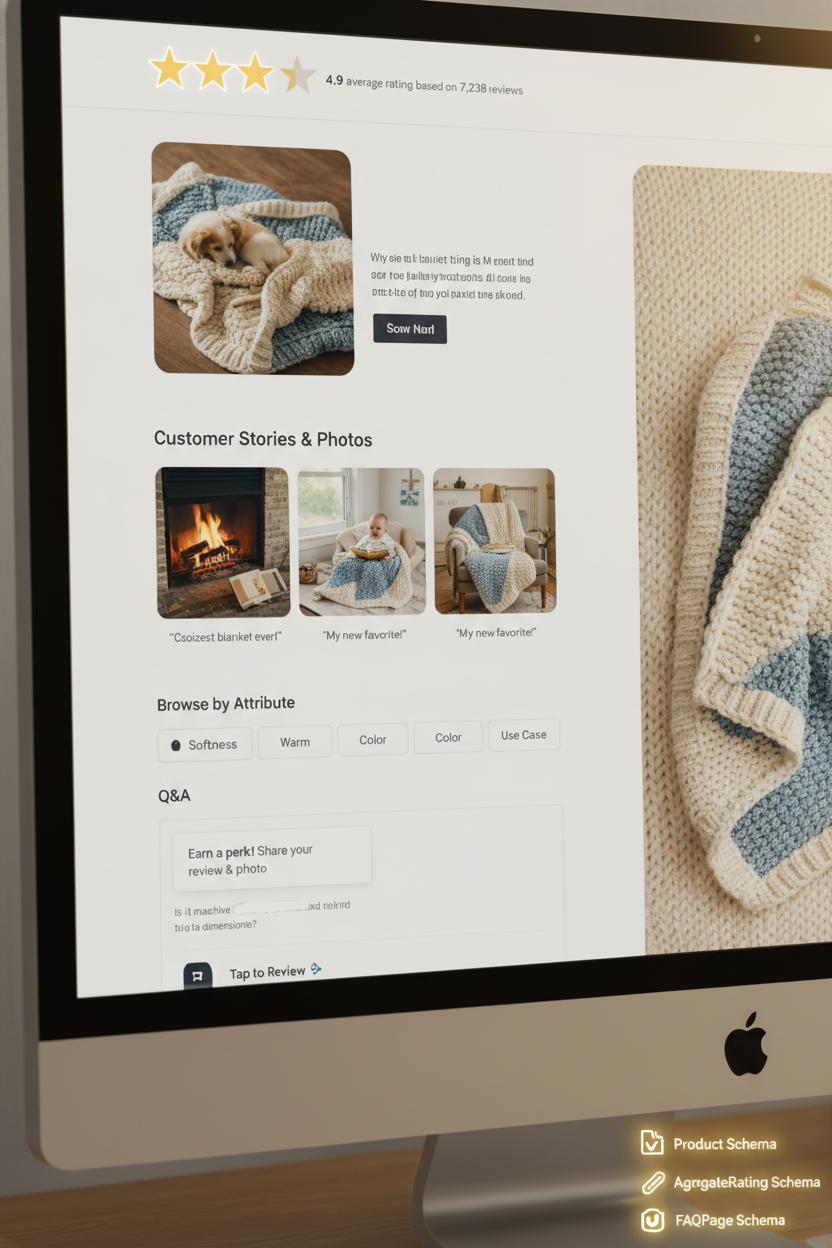Think of reviews and real-life photos as the cozy glow in your shop window. Nothing warms up a cold scroll quite like star ratings, customer snapshots, and little stories about how a product fits into someone’s day. Beyond the feel-good factor, this is powerful e-commerce seo: those gold stars and snippets can lift click-through rates from search, lower bounce, and nudge up conversions. Fold reviews into your product page optimization above the fold—show the average rating, total review count, and a few standout quotes. Sprinkle in UGC galleries with candid photos and short videos, then let shoppers browse by attributes they care about (size, skin type, room style, use case). This kind of trust-first layout is Pinterest-pretty, but it’s also practical—more dwell time, richer relevance signals, and, ultimately, more online store traffic.