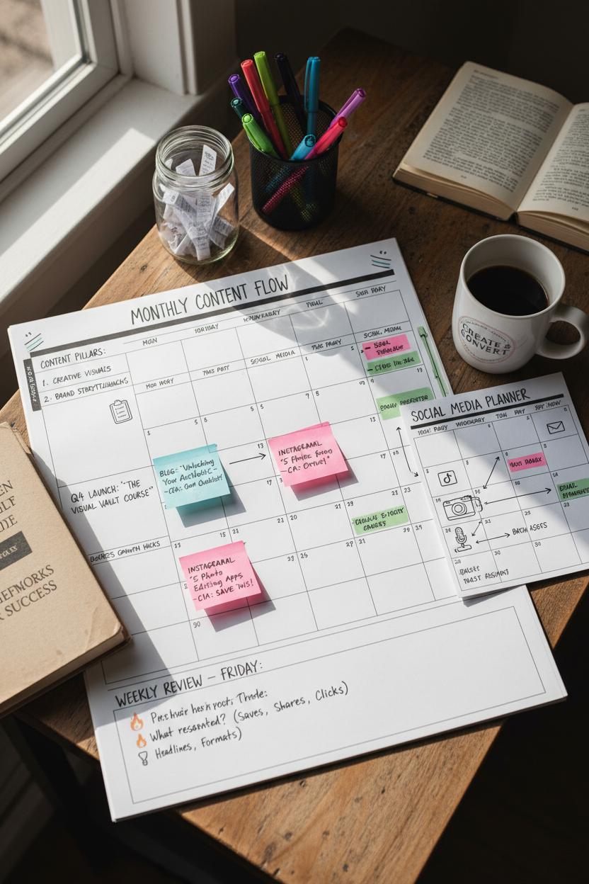 Think of your calendar as the cozy command center of your content marketing, where ideas become a flow of posts that actually nudge people to subscribe, click, and buy. Start by sketching three to five content pillars that mirror your offers and your audience’s questions, then map them across the month with intentional CTAs—save this, comment with a question, grab the checklist, book a call. A simple blog planner helps you pair every post with a next step, whether it’s a lead magnet or a product page, so each piece has a conversion goal, a visual, and a deadline. Layer in seasons and launches, and anchor your blog content strategy to the customer journey: discovery, consideration, decision. If you love learning frameworks, keep a favorite content marketing book nearby for prompts and proven marketing tips when the ideas feel thin.