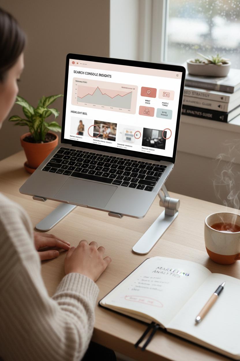 My biggest takeaways? Treat your site like a living library. Use a keyword research tool to map chapters around the queries you already rank for, then build clusters that make a reader feel guided, not lost. Revisit older posts the way you’d refresh a room: tidy headings, swap in stronger internal links, polish meta descriptions with promise and clarity. A concise Google Analytics guide can help you pair click-through rates with time-on-page so your content analytics tell a complete story—are readers staying for the answer they came for? I keep a marketing analytics notebook open as I work, capturing patterns and “why didn’t I try that sooner?” ideas. Even a simple laptop stand helps when you’re in flow, reviewing data and rewriting subheads until they sing.