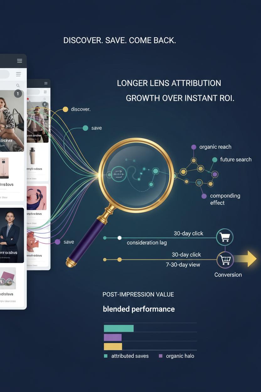 Pinterest doesn’t behave like the last-click platforms you may be used to, so your analytics and attribution should honor how people actually shop here: they discover, save, and come back when the moment is right. In practical terms, that means evaluating Pinterest ads with a longer lens. Expect consideration lag and look beyond same-day ROAS. Use a generous attribution window (30-day click, 7–30-day view) to capture the delayed impact of promoted pins, and pay attention to the compounding effect of saves, which push your content into boards and future searches. A save is intent; a close-up is curiosity; an outbound click is action. Read these signals as a ladder, not isolated stats.
