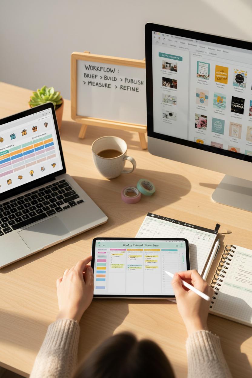 You’ve sketched your audience, mapped your funnel, and picked your creative angles—now let’s make it stick with a simple toolkit you’ll actually use. Start by turning your goals into a living workflow: a weekly planning session with your digital marketing planner open, your content calendar dotted with seasonal moments and launch dates, and a small library of social media templates ready to remix into fresh Pin variations. Build a creative bank that pairs visuals with copy hooks, keywords, and landing pages so every test has a home. Keep your workflow cozy and repeatable: brief, build, publish, measure, refine. When Pinterest ads feel like a habit, performance follows.
