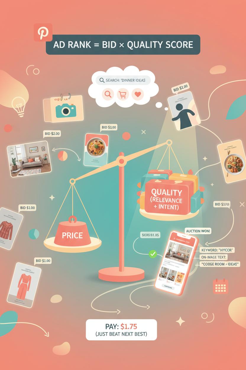 On Pinterest, every scroll triggers a quiet little auction where your promoted pins vie for attention. It’s not just the highest bid that wins; Pinterest advertising weighs your bid alongside how relevant and engaging your ad is predicted to be for that specific person in that specific moment. Think of it as an “ad rank” that blends price and quality. That means a smart Pinterest ad strategy can outshine a bigger budget when your creative, keywords, and landing page line up beautifully. You won’t always pay your full bid either; you typically pay just enough to beat the next best ad in the auction, which is why efficient bidding plus strong creative can drive surprisingly affordable results with Pinterest ads.