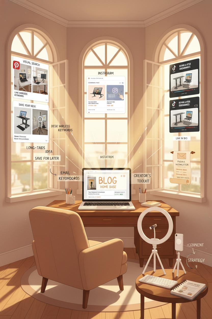 If you want traffic that’s already leaning toward “add to cart,” Pinterest is your quiet powerhouse. Think of it as a visual search engine where people type in “best,” “review,” “gift guide,” and “small space desk setup” when they’re ready to compare and buy. Start by mapping your boards to purchase intent—cozy home office essentials, minimalist kitchen must-haves, holiday gifts under $50—then build pins that feel like mini magazine covers. Use tall, bright images (a ring light helps so much) with clear text overlays like “Top 10 Wireless Keyboards I Actually Use” or “Desk Setup: Laptop Stand + Ergonomic Picks,” and link straight to a comparison post or roundup that includes your affiliate links. These are classic Pinterest affiliate tips: keyword-rich titles and descriptions, seasonal timing (pin 45–60 days early), and multiple fresh images pointing to a single resource. It’s one of those passive income strategies that keeps compounding as pins rank and resurface.