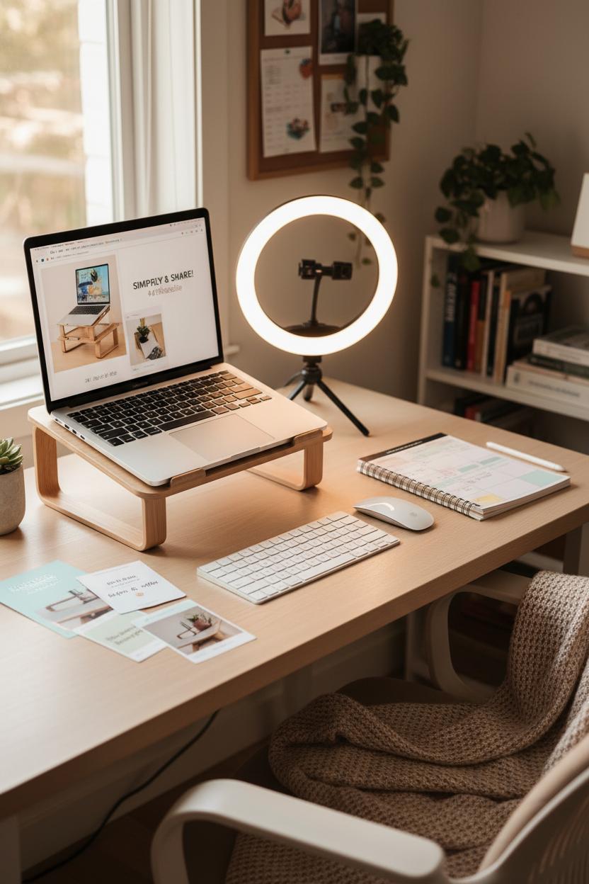 Round it out with mini tutorials: how to adjust the laptop stand height, how to pair the wireless keyboard, and a quick cable-tidy tip. Share a simple morning routine—open the blinds, click on the ring light for cloudy days, elevate the screen, connect, breathe—and invite readers to “shop my desk reset.” The more you demonstrate the bundle in real life, the more trust you build, and trust is what drives clicks into conversions. Keep the focus on comfort, speed, and a prettier workspace, and this little duo will quietly become one of your highest-performing pins.