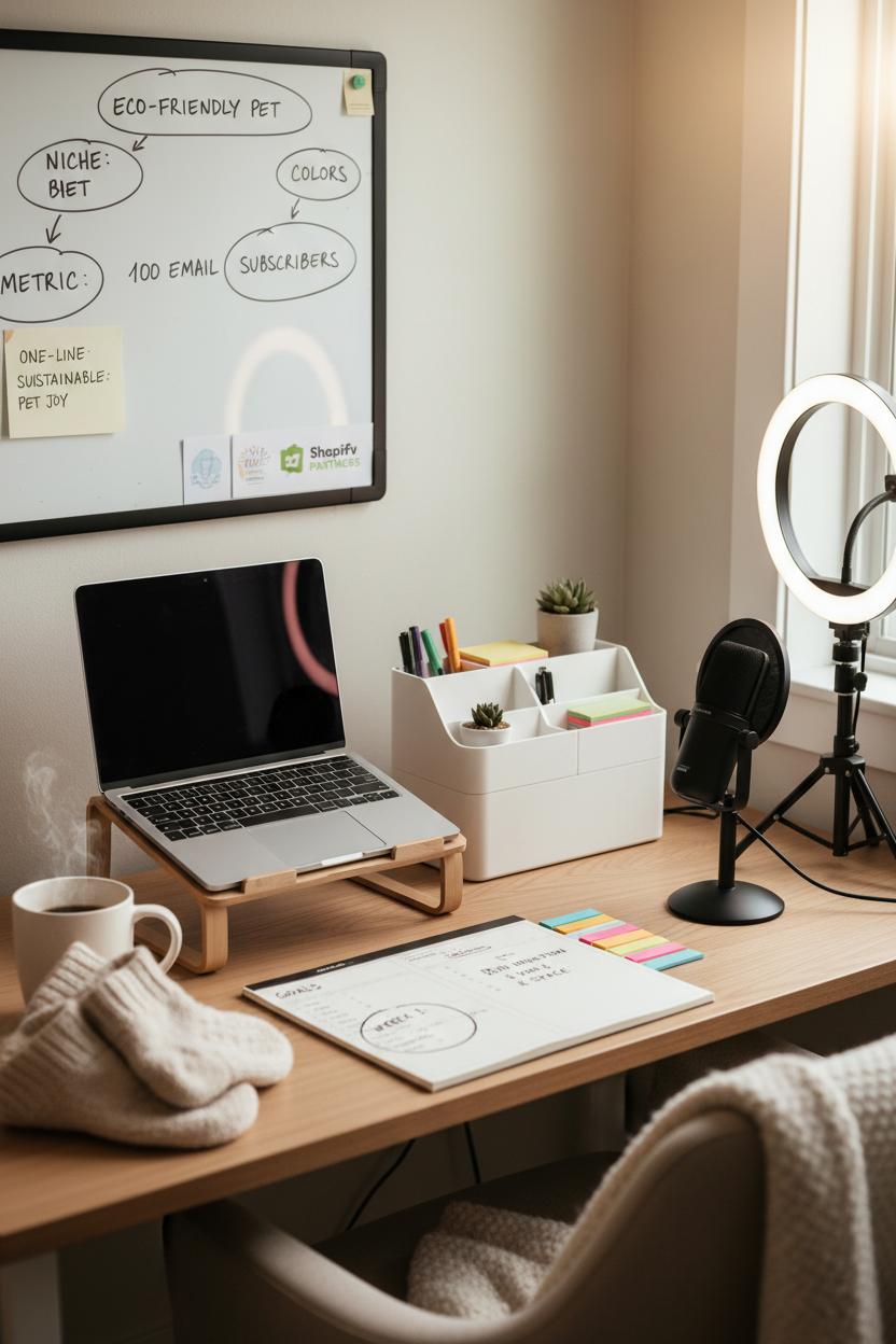 Think of the next 30 days as a cozy sprint. In week one, set your intention and your space. Choose a clear niche and define one realistic metric (like your first 100 email subscribers or one signup) so you know what “win” you’re chasing. Then set up your content corner: prop your laptop on a comfy laptop stand, tidy things in a desk organizer, and keep a notebook planner open for daily to-dos. If you’ll record voiceovers or short videos, a simple USB microphone and ring light go a long way. Create your brand basics (colors, fonts, a one-line promise), open a free landing page or blog, and apply to affiliate programs that fit your niche. If shopify affiliate marketing is your focus, get your partner account set, learn the dashboard, and save your links.
