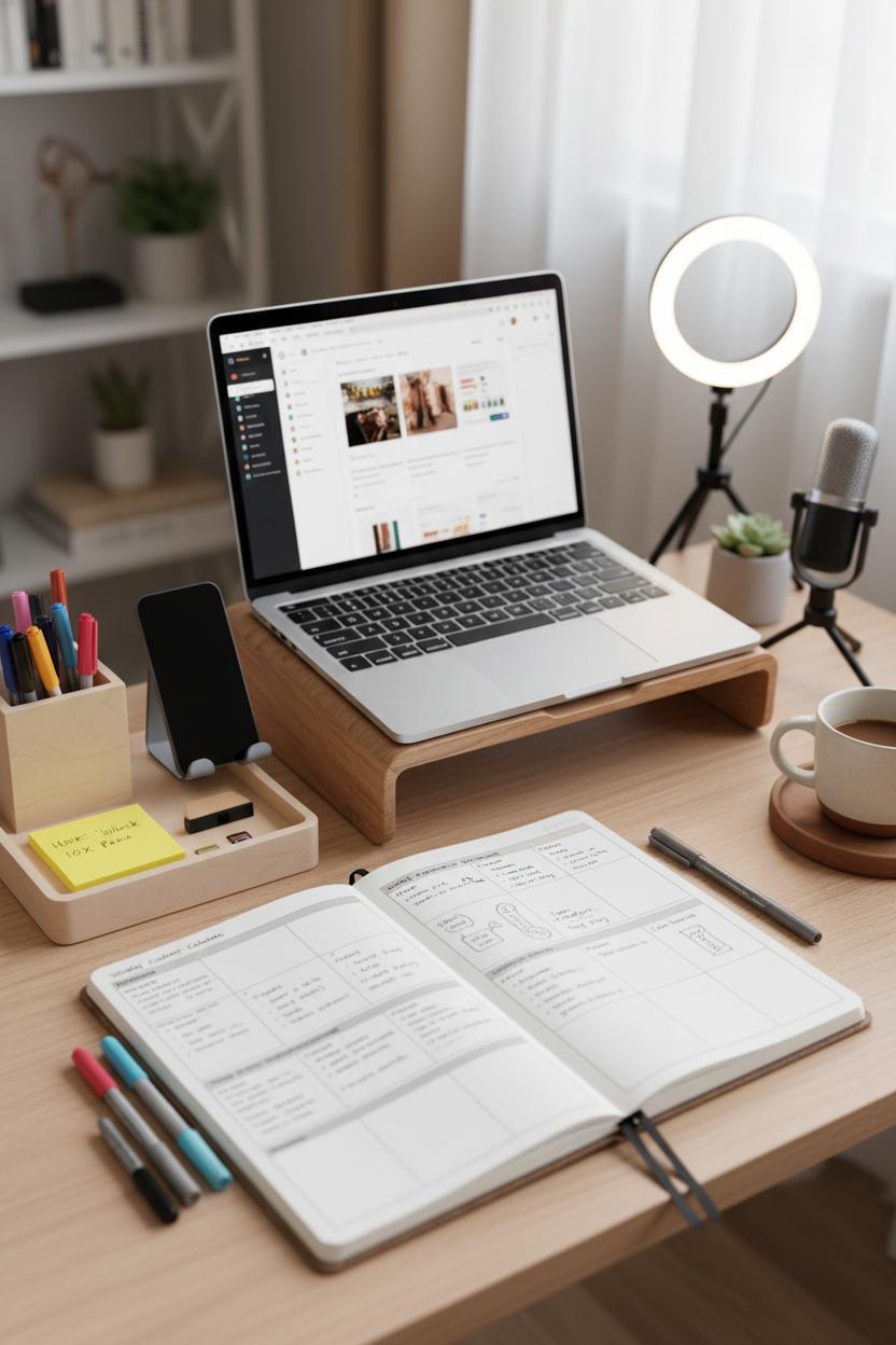 Your desk organizer is the backstage crew that keeps the show moving. Tuck in sticky notes for fast ideas, memory cards, a spare phone stand, and your favorite pens so you can batch content without hunting for tools. Keep your ring light and USB microphone within arm’s reach to record clean, friendly clips that convert—no more excuses about lighting or sound. A laptop stand creates that “mini studio” feel and protects your posture during edit marathons. At the end of each session, slide everything back into a home base so tomorrow’s momentum is ready and waiting.