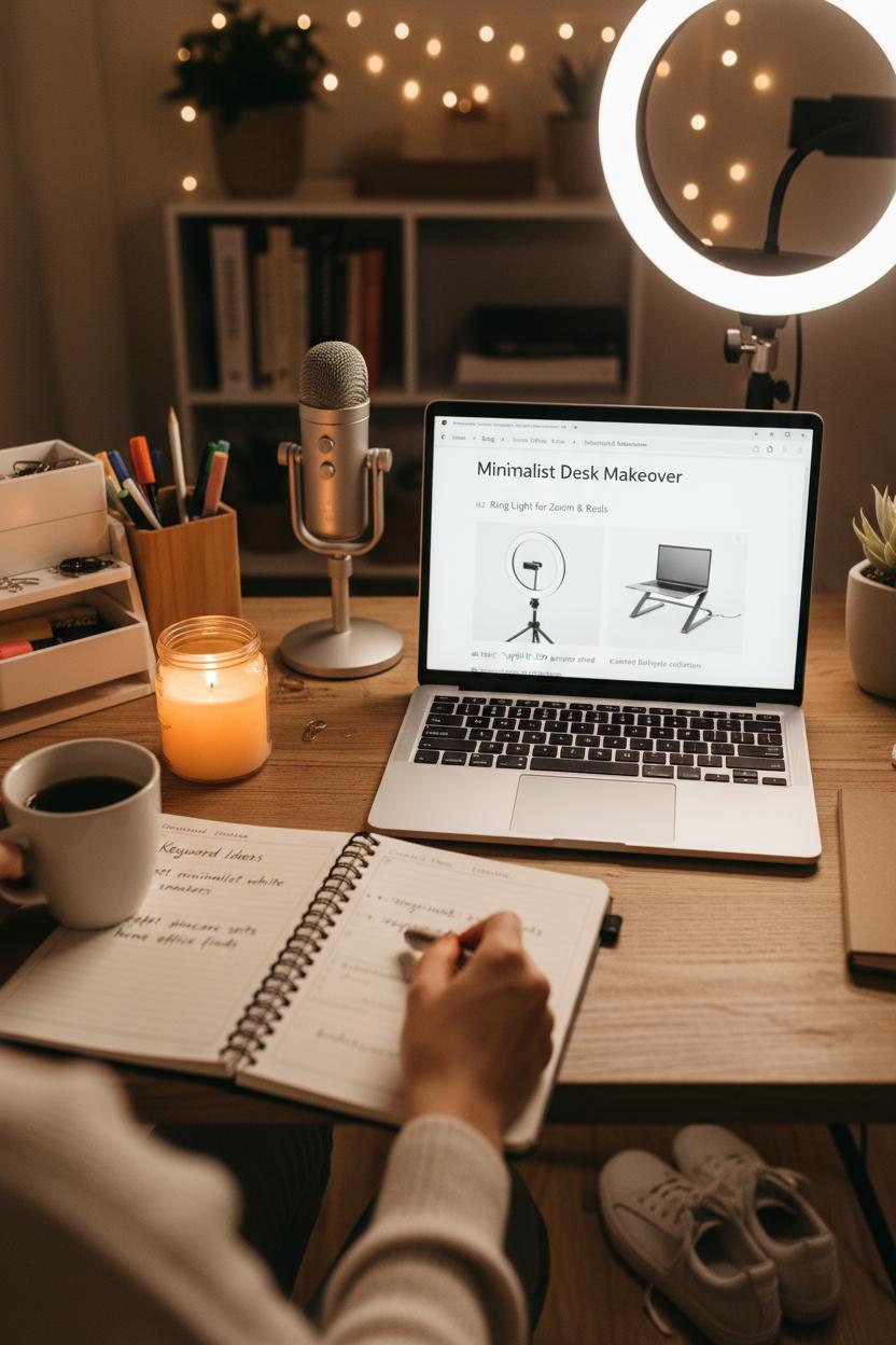 Finally, smooth your creator workflow so you can show up consistently. Batch content with a notebook planner, park your laptop on a laptop stand for flattering angles, and keep a ring light and USB microphone ready for quick reels and product walkthroughs. A tidy desk organizer saves time when you’re swapping props for photos. Choose affiliate programs that offer recurring commissions or bonuses, refresh old posts with updated images and FAQs, and repurpose one big guide into pins, short videos, and an email mini-series. Momentum compounds—small, consistent improvements turn a quiet shop into a steady earner.