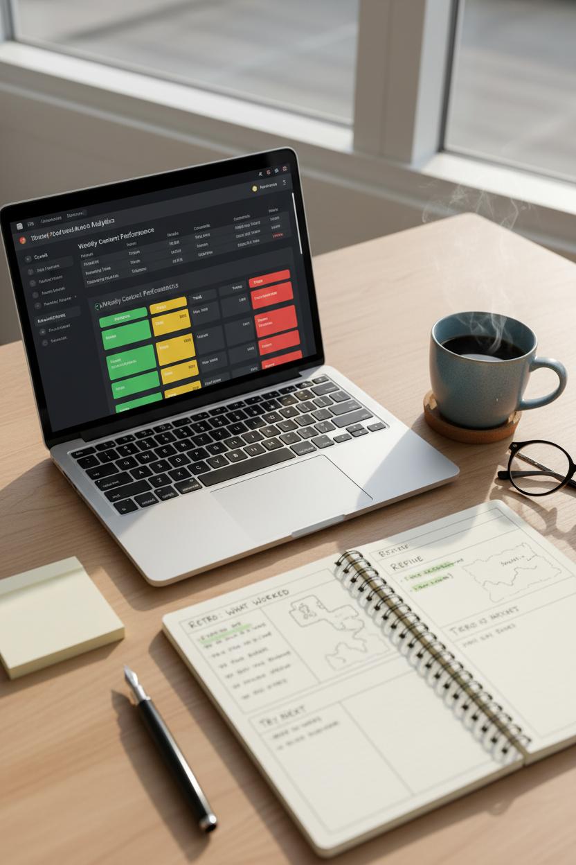 Think of analytics as the cozy debrief after a busy week of posting: you pour a coffee, open your dashboards, and let the numbers whisper what to do next. Block a recurring date with yourself to review performance and jot insights directly into your content planning template—add simple columns for goal, format, hook, posting time, and results so you can see patterns at a glance. Track a handful of meaningful metrics (saves, shares, comments, watch time, click‑throughs, conversions) for each piece and tag it by pillar so you know which stories your audience is craving. Use UTMs on links and note the campaign name in your editorial calendar to connect content to outcomes, whether that’s email signups or shop clicks. A quick color code—green for winners, yellow for tweak, red for retire—turns your template into a living dashboard. If you prefer pen and paper, keep a printable planner or content planner on your desk and transfer the highlights weekly so nothing gets lost between platforms.