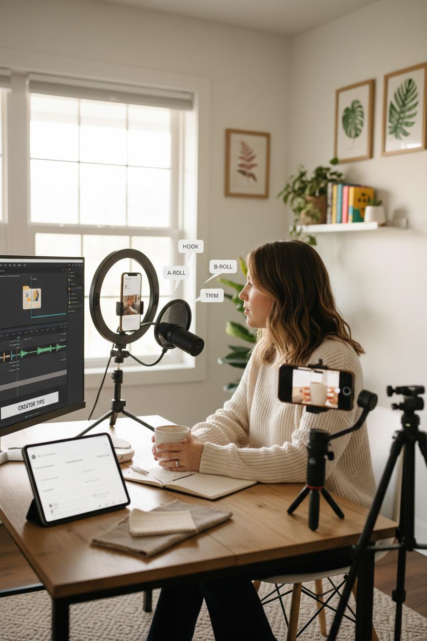 Finally, support your plan with simple tools that make you feel professional without overcomplicating things. A ring light and USB microphone elevate audio and glow for desk recordings, a smartphone tripod keeps hands-free shots steady, and a phone gimbal smooths out those dreamy walk-and-talks. Build a B-roll library whenever the light is pretty and edit with user-friendly video editing software so you can create quickly on busy days. Save caption templates, hook formulas, and brand keywords so you can write faster. The goal is a rhythm that feels like you—consistent, warm, and adaptable—so your presence grows steadily while leaving room for real life and creative play.