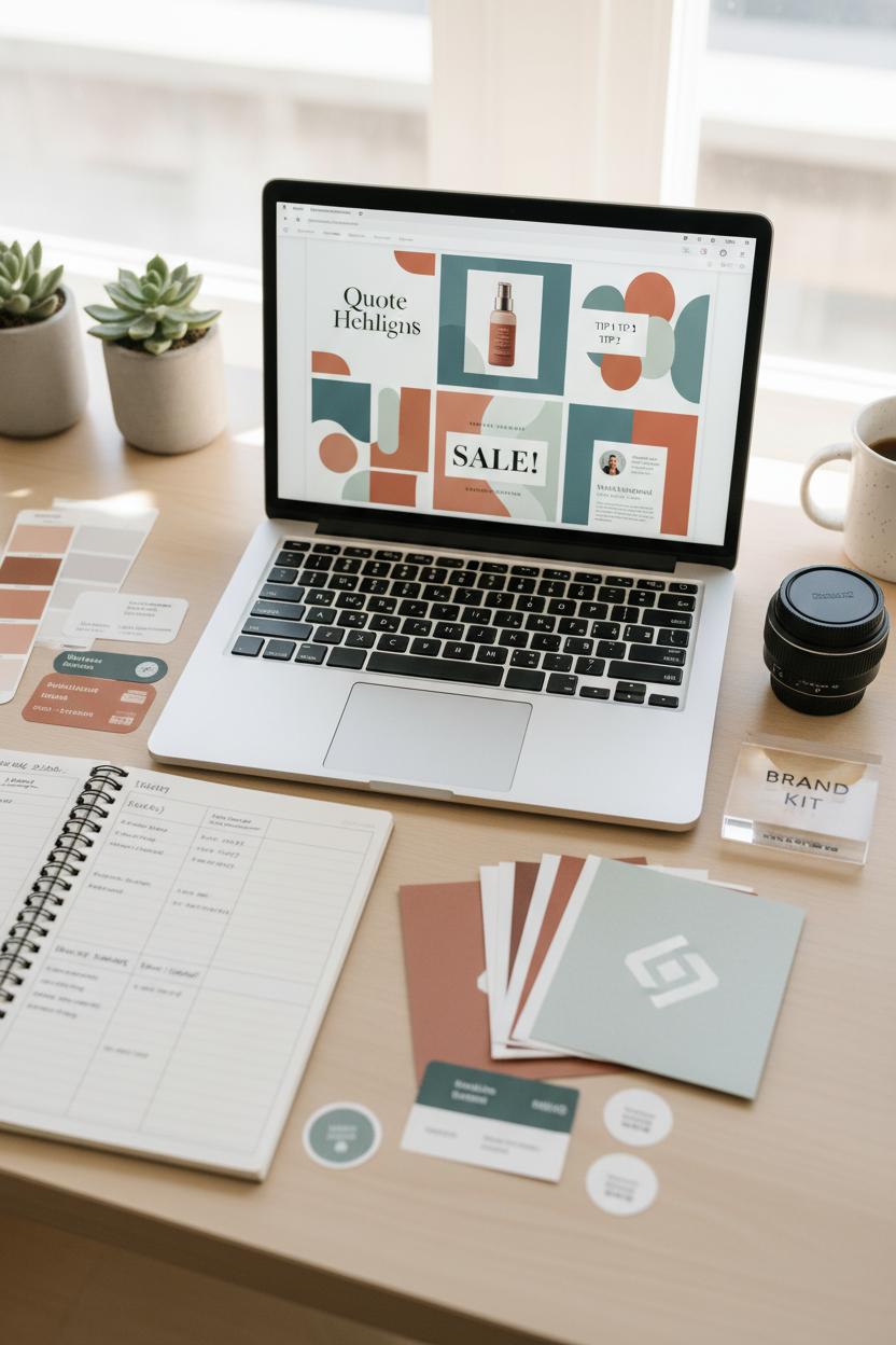 Think of your feed as a little gallery wall: every square should whisper the same story in different ways. Start with your brand aesthetics by choosing a tight palette (three to five shades you love), two friendly fonts that play well together, and a photo style that feels like your vibe—airy and bright, moody and editorial, or cozy and candid. A color swatch book can help you test how those hues behave on screens, and a simple brand style guide keeps decisions easy when you’re in a rush. The goal isn’t rigid sameness; it’s a signature feeling. When someone scrolls past, your Instagram graphics should be recognizable before they even read the handle.