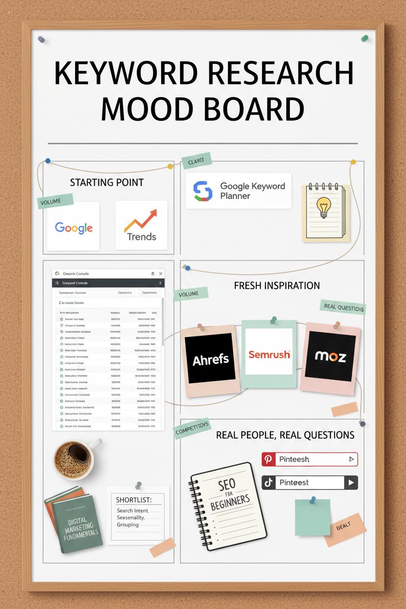 When it comes to research, think of your keyword list like a mood board for the content you’re about to create. Start with Google Search Console to see the phrases you already rank for, then layer in fresh inspiration with Google Trends and Keyword Planner. If you want to go deeper, Ahrefs, Semrush, and Moz are trusty SEO tools for volume, difficulty, and competitor insights—perfect whether you’re polishing a seasoned digital marketing strategy or collecting SEO for beginners notes in a pretty notebook. I like to peek at Pinterest and TikTok search bars too; they’re gold for understanding how real people ask questions. Keep your shortlist clean and intentional by grouping keywords by search intent and seasonality, and if you need a foundation, a couple of digital marketing books on your shelf can make complex concepts feel cozy and clear.