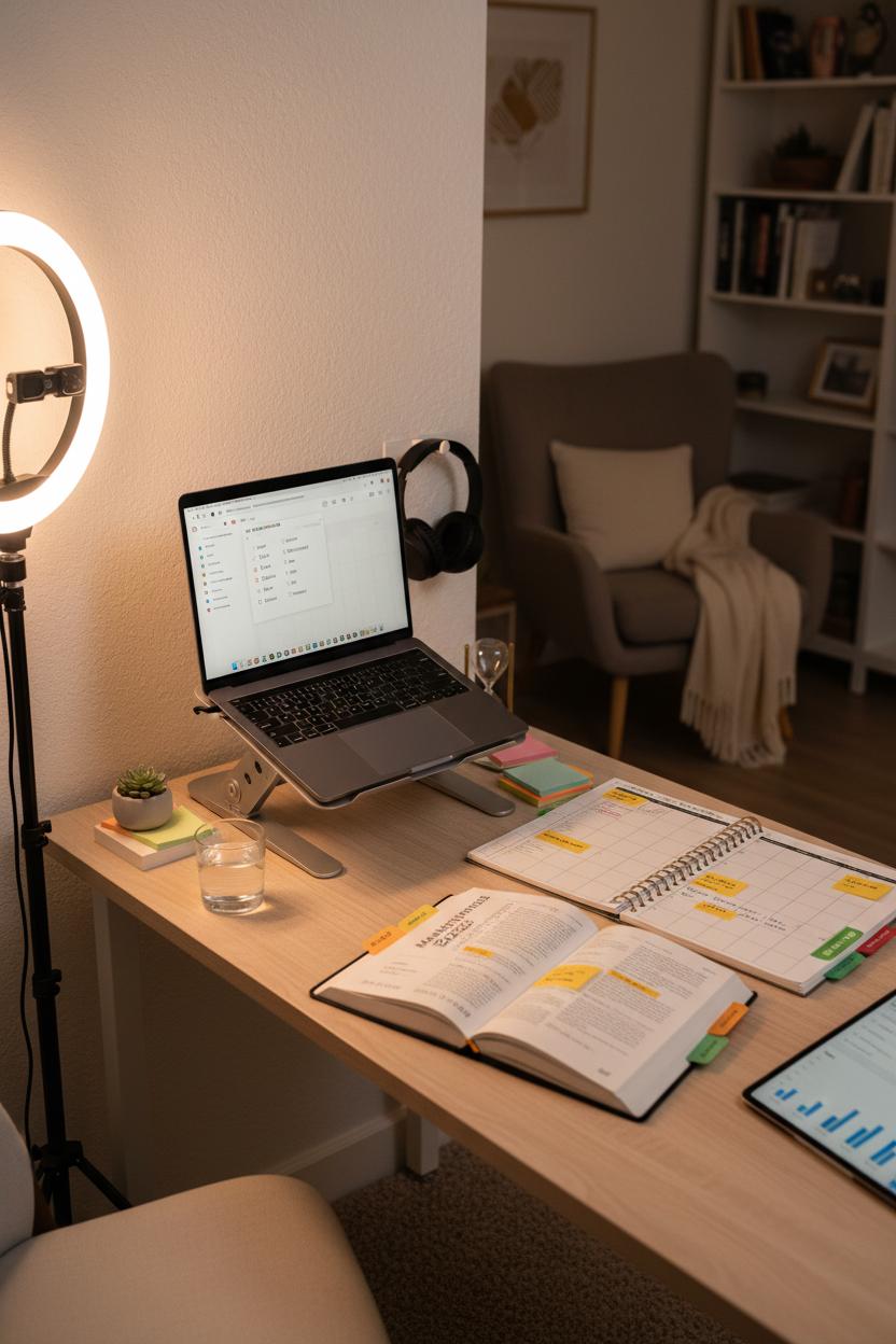 Execution is where your beautiful ideas become results, so set yourself up to actually want to show up. Clear a cozy corner, prop your laptop on a sturdy laptop stand, and keep a ring light nearby so you can record on-the-fly Tutorials and Lives without wrestling the shadows. Lay out a content calendar notebook or a social media planner with color-coded tabs for campaigns, launches, and seasonal moments—because a plan you can touch is a plan you’ll follow. Keep a dog-eared marketing strategy book within reach for quick inspiration and frameworks; when you hit a creative wall, three pages can unlock a new angle or tagline. Make your desk a tiny studio-meets-control-center: headphones for focus, sticky notes for hooks, and a timer that nudges you into short, powerful sprints.