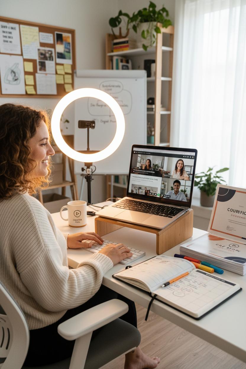 You don’t need a film studio to look and sound polished. A simple home setup—a laptop stand to lift your camera to eye level, a ring light for soft, flattering glow, and a wireless keyboard so you can teach comfortably—goes a long way. Pair that with an ergonomic office chair for long sessions and a trusty planner notebook to map modules, track feedback, and plan launches. Record short, focused videos, add downloadable checklists, and offer weekly group calls to keep everyone on track. Tools are abundant and affordable: course platforms host your lessons, payment processors handle logistics, and community spaces keep your cohort connected between calls.