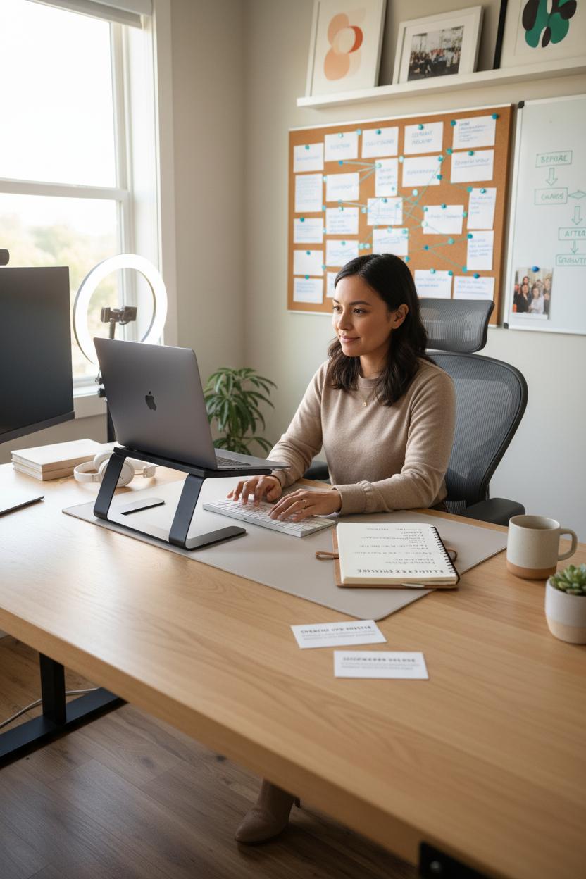 Set the scene for focus and flow: a simple home office with a laptop stand to keep your screen at eye level, an ergonomic office chair for those edit-heavy afternoons, and a wireless keyboard that makes deep work feel silky. A ring light elevates discovery calls and UGC review sessions, while a favorite planner notebook keeps launch milestones and daily priorities in view. Mornings might start with a check-in across time zones, a quick analytics sweep, and a calm plan for the day’s deliverables. With thoughtful systems, a warm client experience, and a portfolio of before-and-after dashboards, this agency model can carry you from “trying to make money online” to running a boutique ops brand that scales with a small, happy team.