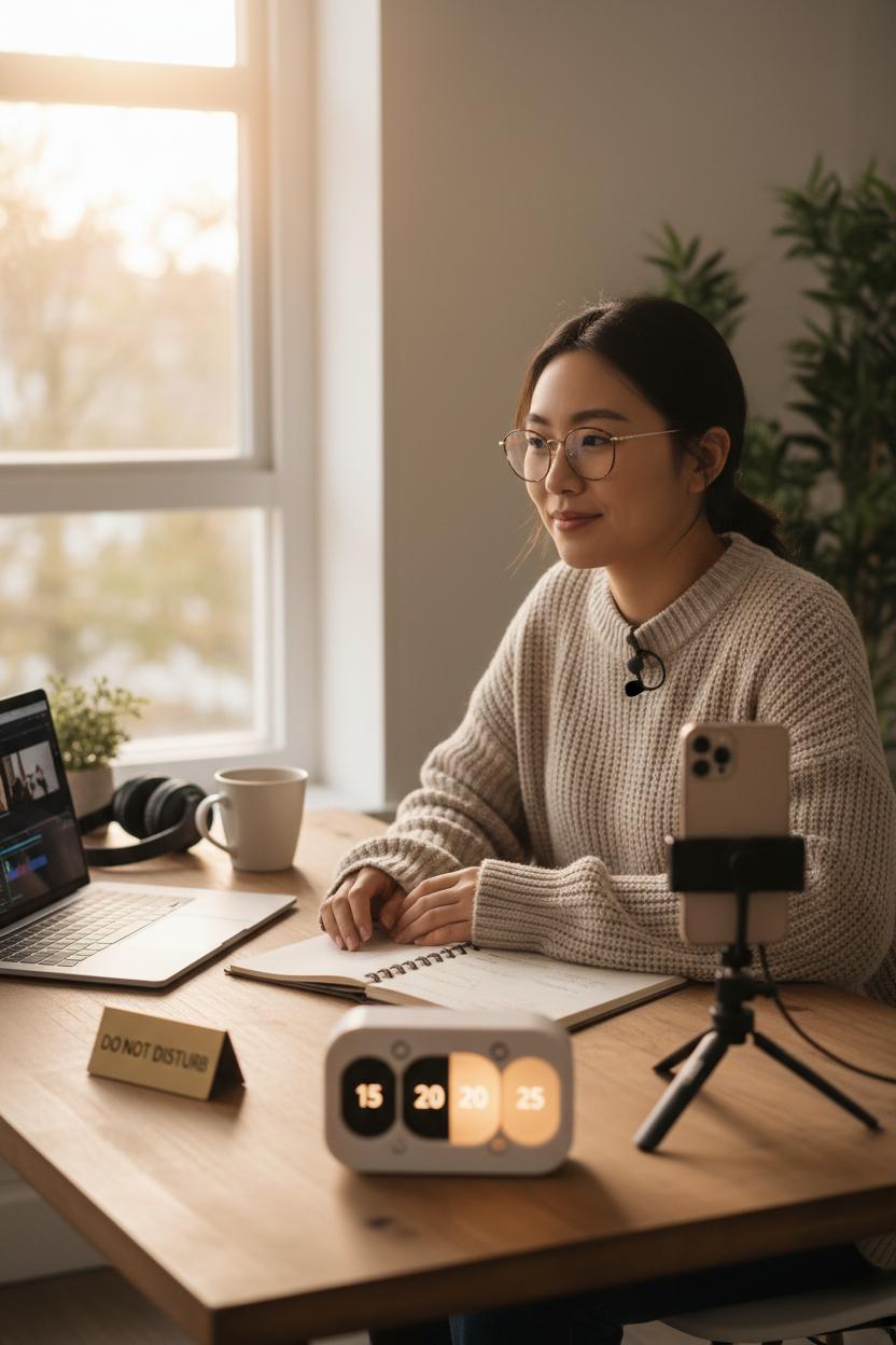 The magic is in making your blocks realistic and repeatable. If an idea needs more time, park it for tomorrow’s block instead of blowing up your day. Protect your timer and make it a ritual—tea poured, playlist low, task chosen. The more consistently you use it, the more your mind associates that gentle countdown with focus and finish. Over a week, these small, protected sprints turn into a complete content plan and a full queue, minus the overwhelm. That’s the quiet power of time-boxing for creator productivity: less dithering, more done.
