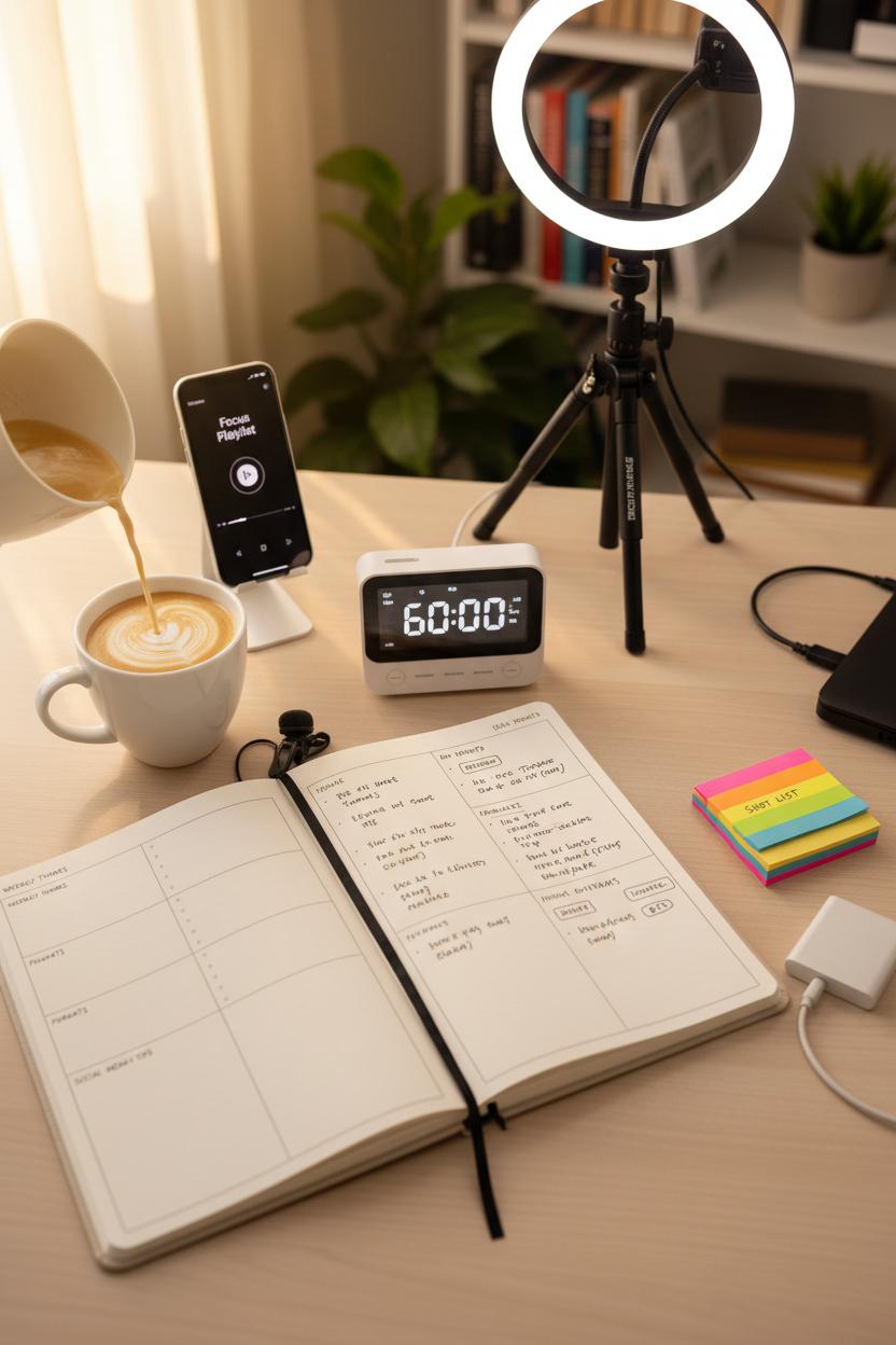 In a 60-minute session, stack your blocks with intention. Try 15 minutes to brainstorm hooks and headlines, 20 minutes to outline or script, and 25 minutes to record or design. If you’re filming, have your tripod with phone mount, ring light, and lavalier microphone ready so you can hit record the second the timer starts. That’s content batching at its best—one setup, multiple assets. As each block ends, stop exactly where you are, capture any stray ideas in your content planner, and move to the next task. You’ll be amazed how the “ding” becomes a finish line you actually look forward to. And as you wrap the hour, add captions, calls to action, and a few SEO keywords to your descriptions, then drop posts into your scheduler while the energy is high. Little social media tips like batching hashtags or saving templates in your notes app help you ship faster and keep everything on-brand.