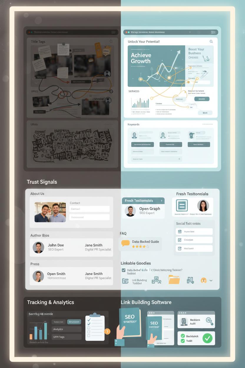 Next, lay out trust signals like a welcoming entryway. Add a warm About page, a clear Contact route, author bios with real credentials, and fresh testimonials or case studies. Create a simple press page with a bio, boilerplate, approved headshots, and a media kit—instant time-saver for digital PR wins. Refresh social sharing images and make sure Open Graph titles pop; add FAQ or Review schema where it makes sense. Finally, stock your site with linkable goodies: a data-backed guide, a checklist, a template, or a mini calculator. These make link building feel natural because people want to save and share them.