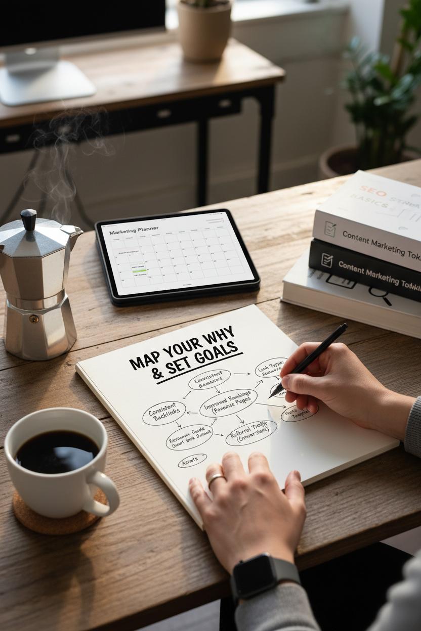 Before you pitch a single editor, pour a fresh coffee and map the why behind your link building. Goals come first because off page seo works best when it supports the business story you’re already telling. Decide what success looks like: a steady cadence of quality backlinks each month, rankings for two or three revenue-driving pages, or a bump in referral traffic that actually converts. Get specific about link types, too—niche-relevant resource links, thoughtful guest features, or data citations via digital PR. Tie each goal to an asset you’ll create, whether it’s a visual guide, an industry study, or a handy template. If you love a good plan, a marketing planner keeps deadlines real, an SEO book can sharpen your strategy basics, and a content marketing toolkit will help you package assets so they’re irresistible.