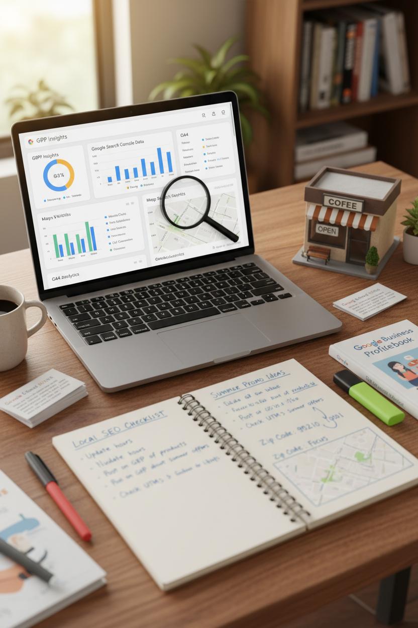 Before you chase new tactics, make sure you’re measuring the ones already working. Start with google business profile insights—the heartbeat of local seo. Peek at the searches that find you (Direct, Discovery, Branded), then watch where visibility happens (Search vs Maps) and which actions people take (calls, website clicks, directions). Those numbers tell a story of how you’re appearing in the map pack and which photos, posts, and services resonate. Pair this with Google Search Console to compare the queries you see in GBP with the keywords driving organic clicks; together they reveal which pages deserve extra love, fresh images, or updated offers. Over time, you’ll notice seasonal patterns—more directions in summer, more calls on Mondays—and you can adjust hours, promos, and even your citation building priorities to fit the neighborhoods that engage most.