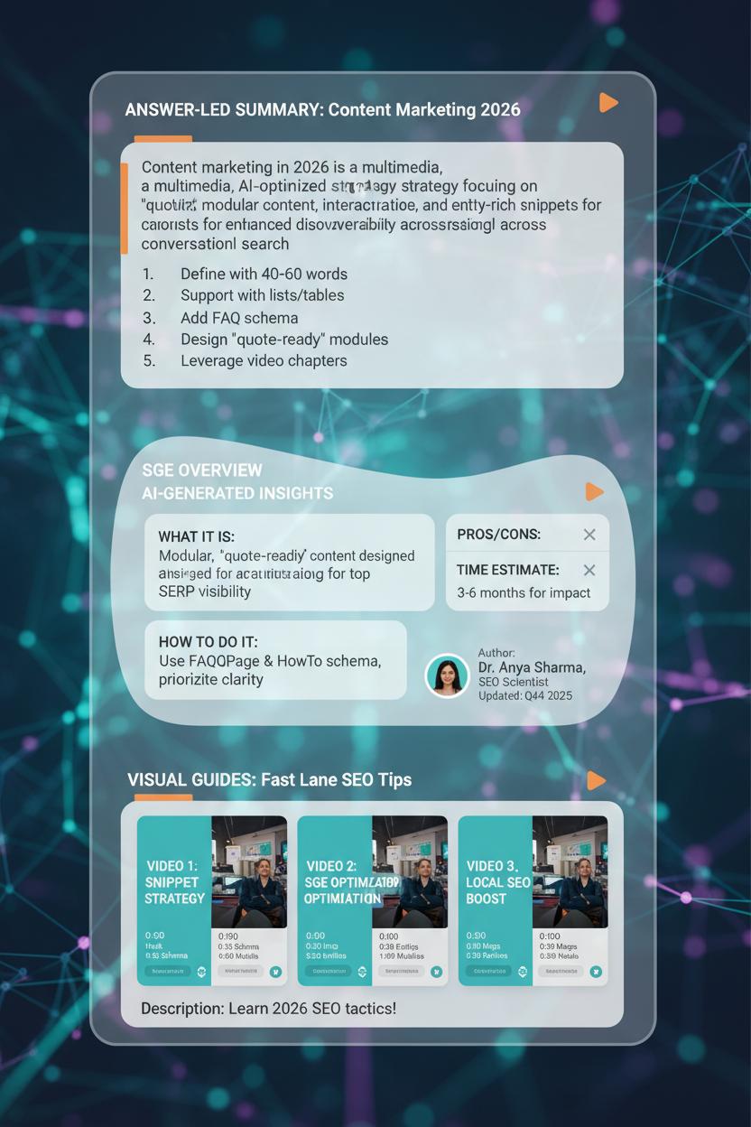 Video is your fast lane. In 2026, chapters, captions, and clean hooks are the trifecta. Front-load your primary term in the first 10 seconds, add timestamped chapters that mirror your headings, and include a one-paragraph summary in the description for SGE to cite. Use vertical clips to tease long-form tutorials, and keep consistent cover styles so your carousel tiles feel like a brand board. Don’t forget local and small business marketing angles—map packs and review snippets pair beautifully with quick how-tos and before/after reels. Wrap it all with empathetic seo tips: prioritize usefulness, update quarterly, and let keyword research guide you, but let your audience’s real questions lead the way.