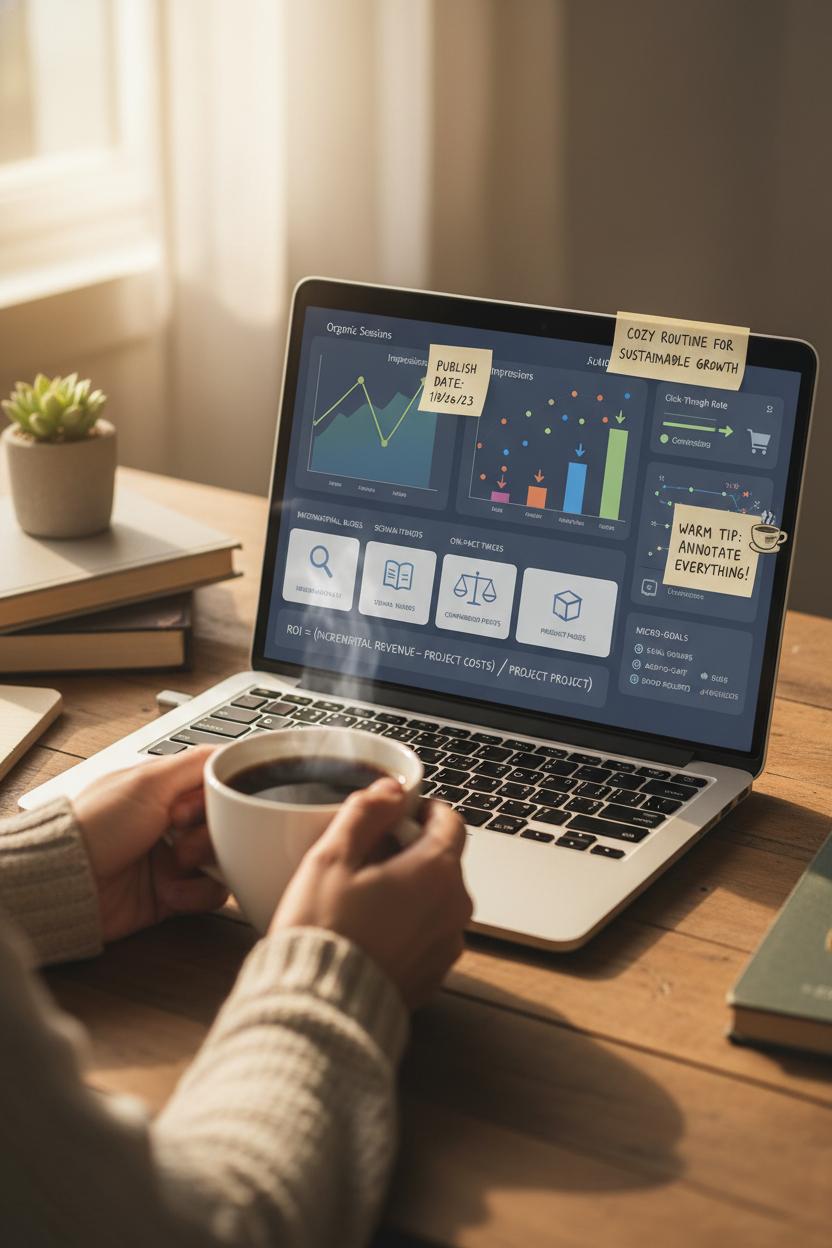 Pour a coffee, open your dashboard, and think of analytics as the cozy routine that keeps your seo marketing grounded in reality. Before the traffic surge, take a baseline: organic sessions, impressions, average position, click-through rate, and conversions tied to each page. Tag key publish dates, schema updates, and on-page seo tweaks so you can compare 28-, 60-, and 90-day windows without guessing. Segment by intent—informational blogs, comparison posts, and product pages—because the KPIs shift with purpose. For content meant to inspire, dwell time, scroll depth, and internal link clicks hint at momentum; for money pages, conversion rate, lead quality, and revenue per visit tell the real story. Warm tip: annotate everything. You’ll thank yourself when it’s time to prove which seo tips moved the needle.