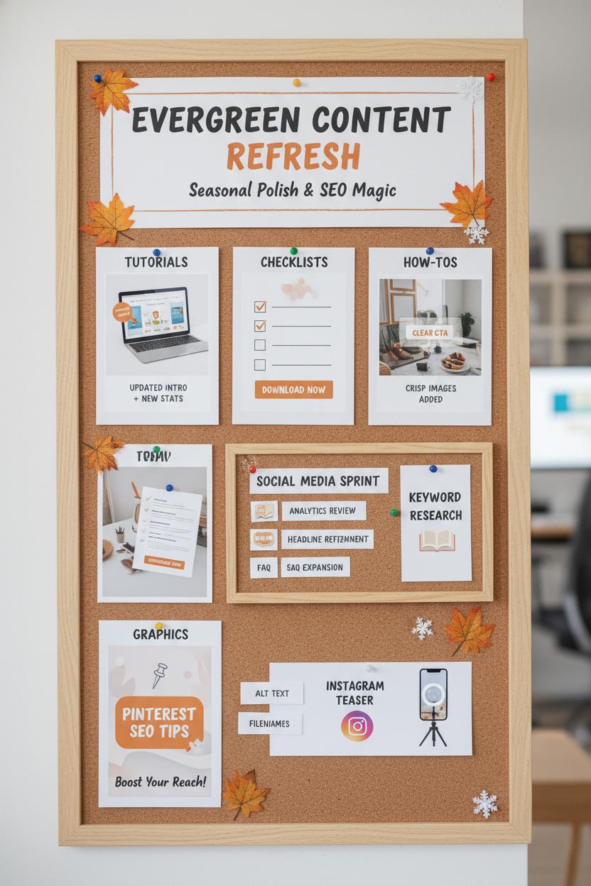 Think of evergreen maintenance like refreshing a beautiful pin board for a new season—same core idea, but newly polished details. When your best tutorials, checklists, and how-tos start feeling a little dusty, it’s time to republish with intention. Update the intro, weave in a recent stat, add a clear CTA, and swap in crisp images. Then re-share it everywhere as an SEO social media post: new caption, new cover image, new first comment, but the same reliable URL and message. This is social media SEO at its friendliest—keeping the content your audience already loves visible, relevant, and easy for platforms to understand.