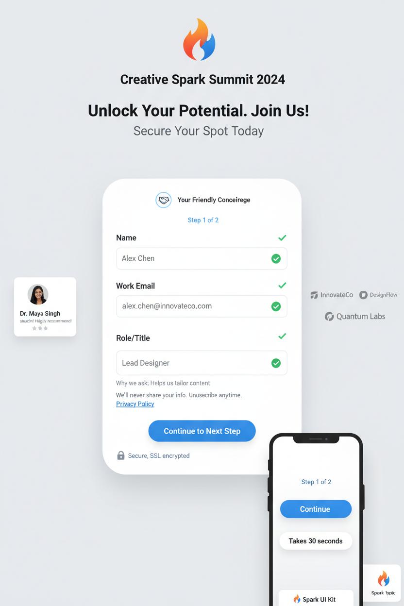 Treat your form like a friendly concierge, not a clipboard. In landing page design, fewer, clearer fields almost always win: name, email, and one focused qualifier are often enough to help with conversion optimization without feeling nosy. Single-column layouts reduce eye zig-zag and make completion feel breezy. If you truly need more, try a gentle, two-step flow with a progress hint (Step 1 of 2) and smart defaults that prefill where possible. Use explicit labels above fields (placeholders can vanish mid-typing), add tiny “Why we ask” microcopy for sensitive questions, and set correct input types so phones surface numeric keypads for phone/ZIP. Let autofill do its magic; it’s a gift. On mobile, make tap targets comfy, keep the CTA sticky, and show a short line about the time required—“Takes 30 seconds.” Sketch the layout in a wireframe sketchbook first, then finesse it with figma templates or a polished Figma template and UI kit so spacing, contrast, and error states are consistent with your broader ux ui. If you like learning by example, a solid UX design book can spark patterns to adapt, and you can test variants quickly by swapping components in a landing page template.