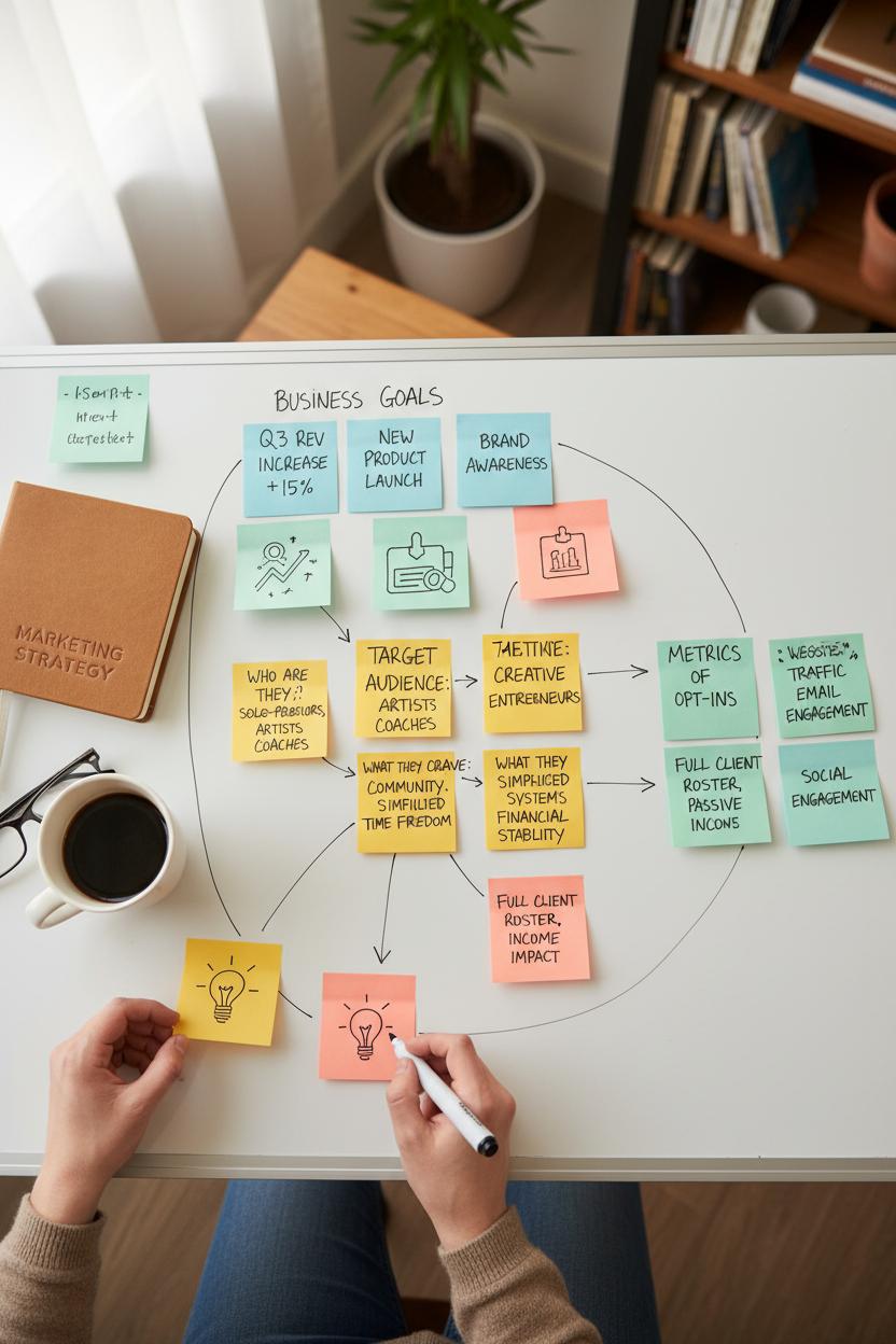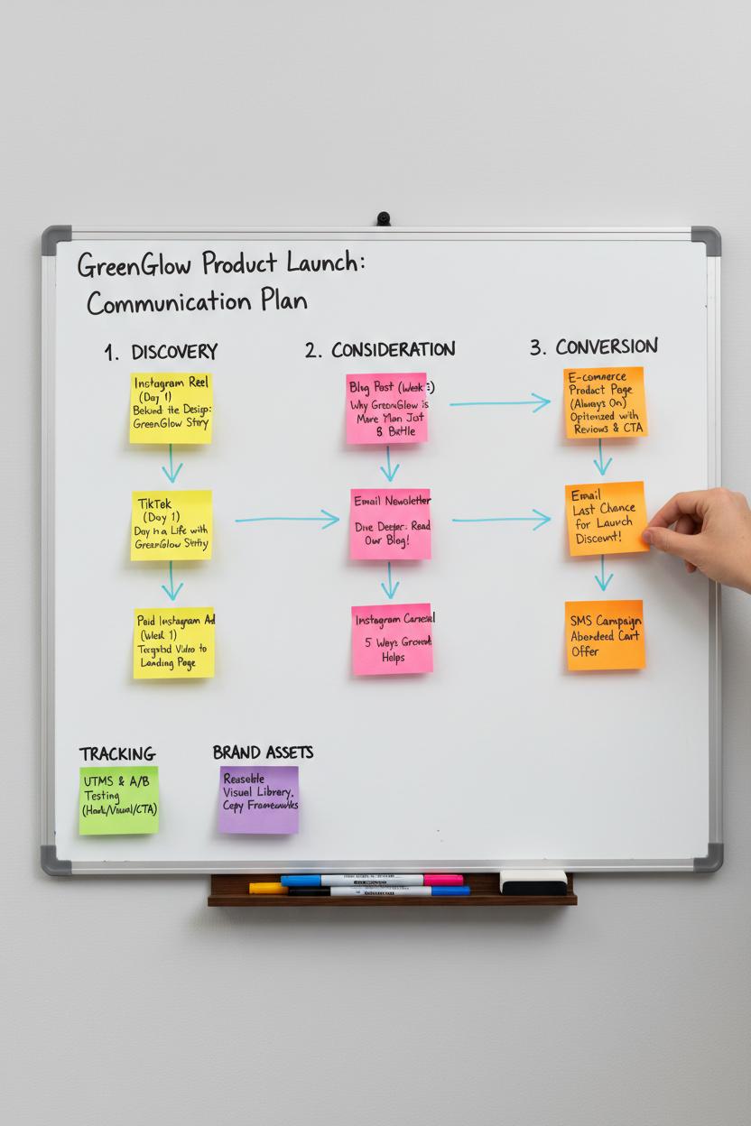 This is the moment your ideas turn into momentum. Start by translating your goals into a simple, measurable communication plan that syncs with your brand messaging and buyer journey. Define what success looks like for each phase—awareness, consideration, and conversion—and assign clear KPIs: saves and shares for awareness, click-throughs and time on page for consideration, sign-ups or consultations for conversion. Map channels to messages so your marketing communication feels consistent and intentional across email, social, blog, and paid—true integrated marketing. Then layer in your content strategy: decide on 3–5 pillars that ladder up to your value proposition, list the content formats that fit each pillar, and outline the cadence you can realistically sustain.