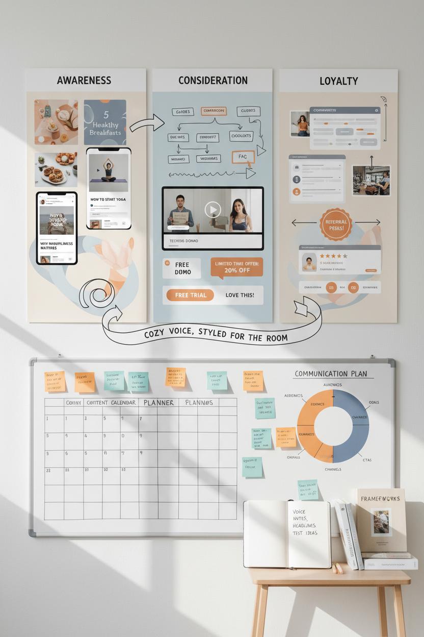 Now that you know who you’re speaking to, it’s time to build a content strategy that walks with your audience from first glance to loyal fan. Picture your customer journey like a dreamy storyboard: awareness, consideration, decision, and loyalty. At each moment, your brand messaging should feel like the same cozy voice—just styled for the room you’re in. That’s the heart of integrated marketing: your posts, emails, pins, podcasts, and landing pages all humming one melody. Your marketing communication isn’t just what you say; it’s how you guide people—gently and clearly—toward what’s next.