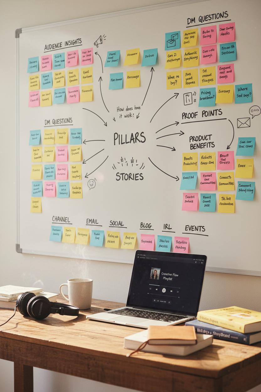 Keep the tactile energy flowing. Revisit the wall weekly, promote sticky notes from “idea” to “scheduled,” and retire the ones that don’t serve the story. Color-code by funnel stage or campaign, and make it a ritual to check what performed and what needs tweaking. With a notebook for the strategy and a calendar for the runway, your ideas stop evaporating and start compounding. You’re not just brainstorming; you’re building a repeatable engine that supports brand messaging across channels, aligns with business goals, and leaves room for creativity. And when your team asks what’s next, you’ll have the map, the story, and the schedule—ready to go.