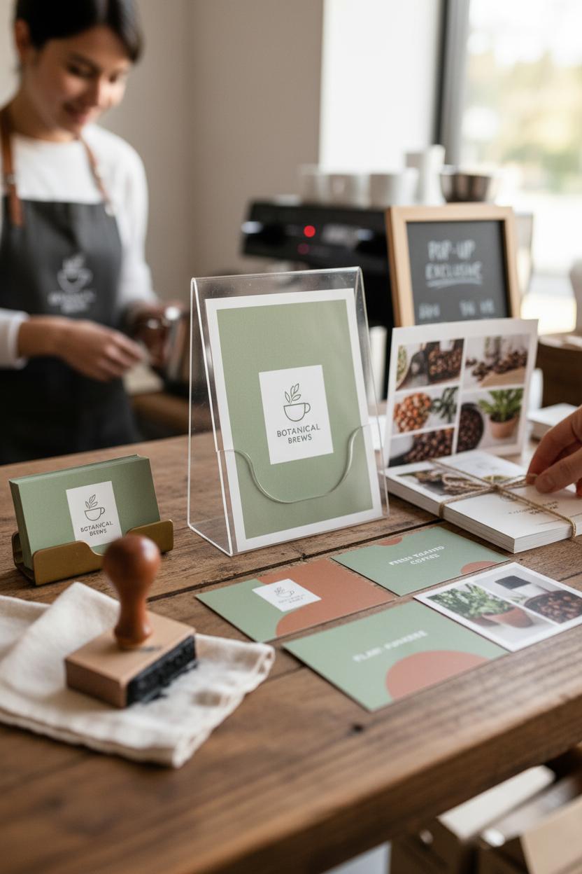 Next, translate that look into a handful of reusable pieces. Think business cards, thank-you inserts, email headers, and a one-page flyer—all based on printable marketing templates so you can update offers fast. For a luxe, tangible feel, print on sturdy cardstock paper and keep a logo stamp handy to brand shipping boxes, tissue, or kraft bags in seconds. It’s those tiny, repeatable touches that create memory. When you’re ready to show up in person, a neat stack of cards in a business card holder and a clean brochure in a simple brochure stand instantly elevates your table, counter, or pop-up. Keep versions sized for social and print marketing, and export high-res PDFs so everything stays crisp.