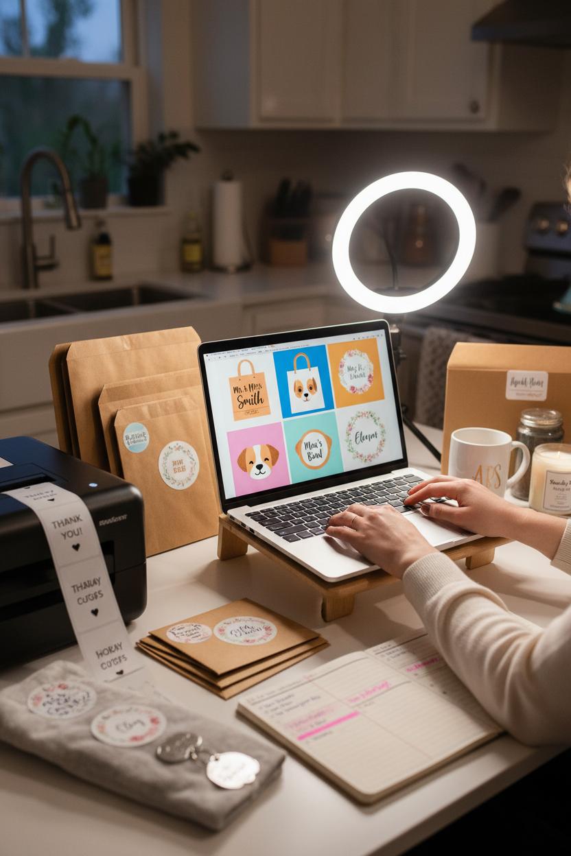 Start with irresistible niches where personalization shines: wedding welcome bags, bridal party mugs, baby milestone blankets, pet tags and bowls, teacher gifts, custom candles with poetry on the jar, even QR-code luggage tags. Use Canva or your favorite design tool to craft collections tied to seasons and life moments, then photograph samples with a ring light for crisp, scroll-stopping listings. Keep your workflow comfy and efficient with a laptop stand and a simple business planner to map launches, restocks, and holiday cutoffs. A label printer pulls double duty, spitting out branded stickers and care cards alongside shipping labels, while bookkeeping software keeps taxes tidy as your order volume grows. Since your partner handles fulfillment, your home business footprint stays small—and your energy goes into design, customer love, and storytelling.