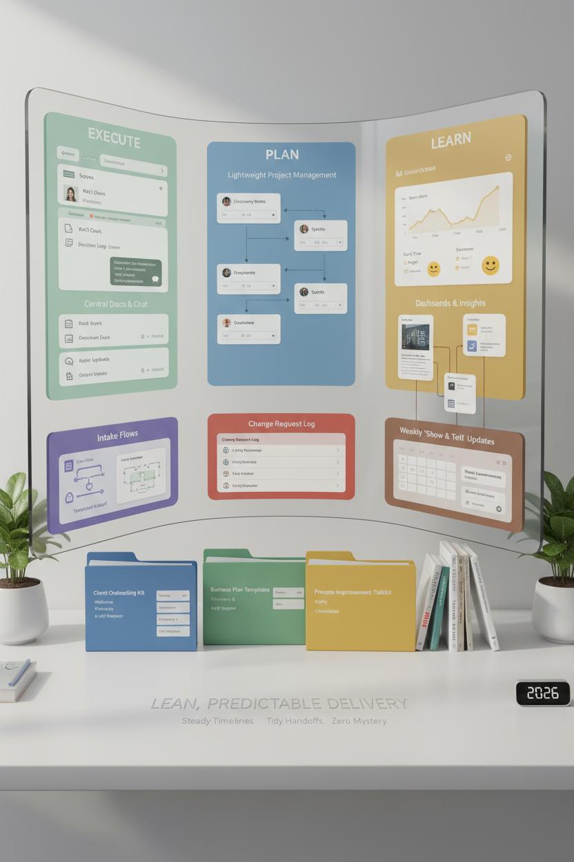 Picture the shelf behind your desk: a row of dog-eared management consulting books, a tidy folder of business plan templates ready to customize, and a client onboarding kit that turns day one into a calm, confident welcome. Every asset earns its space. Your pricing nudges toward outcomes, your governance keeps scope crisp, and your retros feed directly back into the playbook. This is the 2026 vibe—warm, human, and quietly decisive—where you productize what works, prune what doesn’t, and let your brand speak through the details. The result isn’t just more clients; it’s better fits, smoother delivery, and a reputation for results that travel farther than any ad spend ever could.