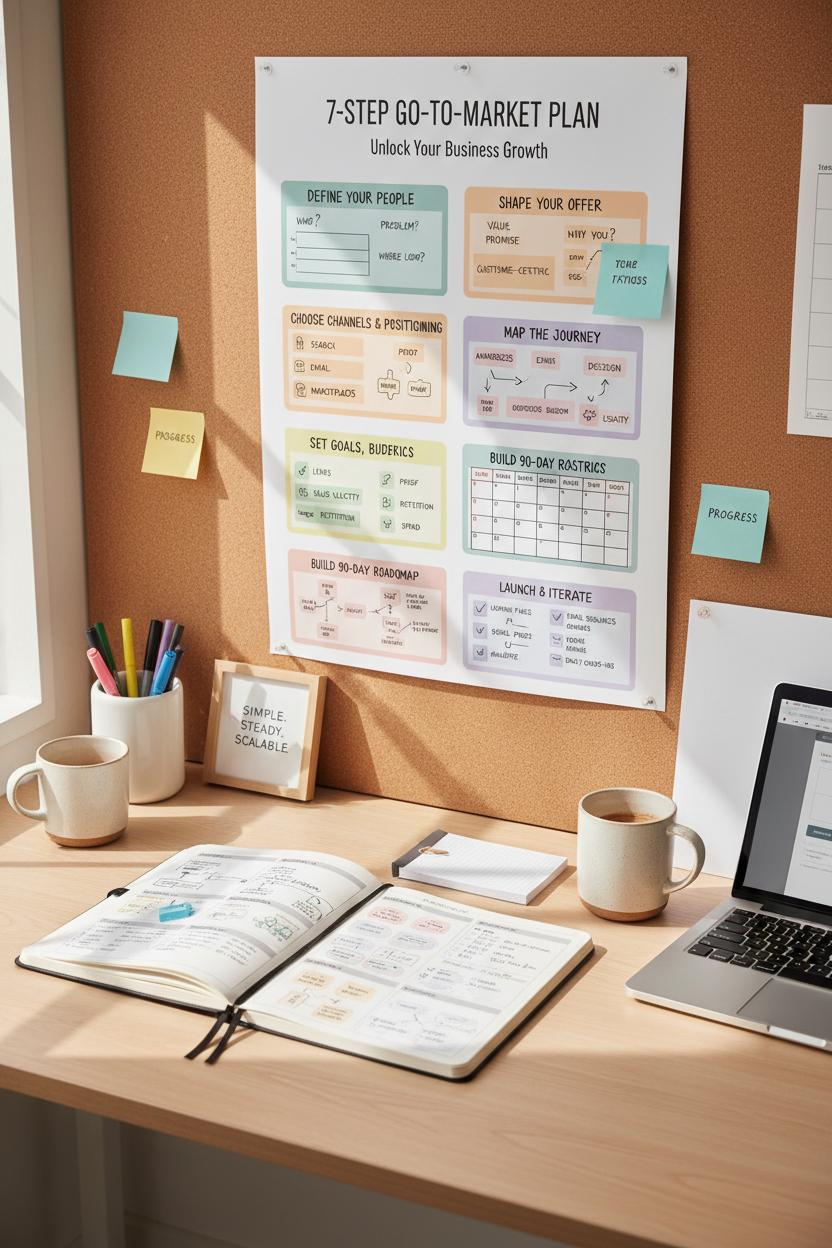 If you love a one-page business marketing plan pinned above your desk, you’ll love this: seven simple steps to sketch a clear go-to-market plan without the overwhelm. Start by opening your marketing planner or favorite project management notebook and jotting down Step 1: define your people. Who exactly are you serving, what problem are they trying to solve, and where do they currently look for answers? Step 2: shape your irresistible offer and value promise—what makes you different, faster, friendlier, or more effective? Keep it tight and customer-centered. Step 3: choose your channels and positioning. Decide where you’ll show up (search, social, email, local partners, marketplaces) and how you’ll be known there. If you’re using a marketing strategy template, plug in those choices now so your message stays consistent everywhere.