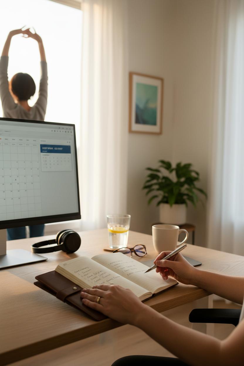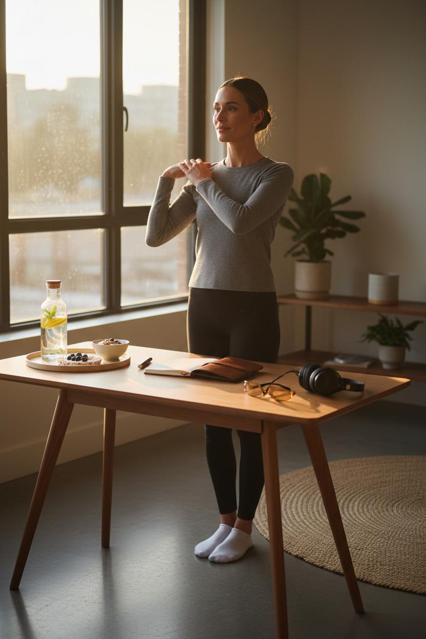 The final five minutes are for momentum: clear one tiny task you’ve been avoiding (reply, reschedule, recycle) and lay out your workspace so future-you glides right in—charging cables set, water glass filled, notebook open on a clean page at the standing desk. That’s it: 30 minutes, thoughtfully stacked, gently powerful. Not flashy—just repeatable. And when repeated, this morning routine becomes muscle memory, the quiet rhythm behind a focused day and a steadier kind of success.