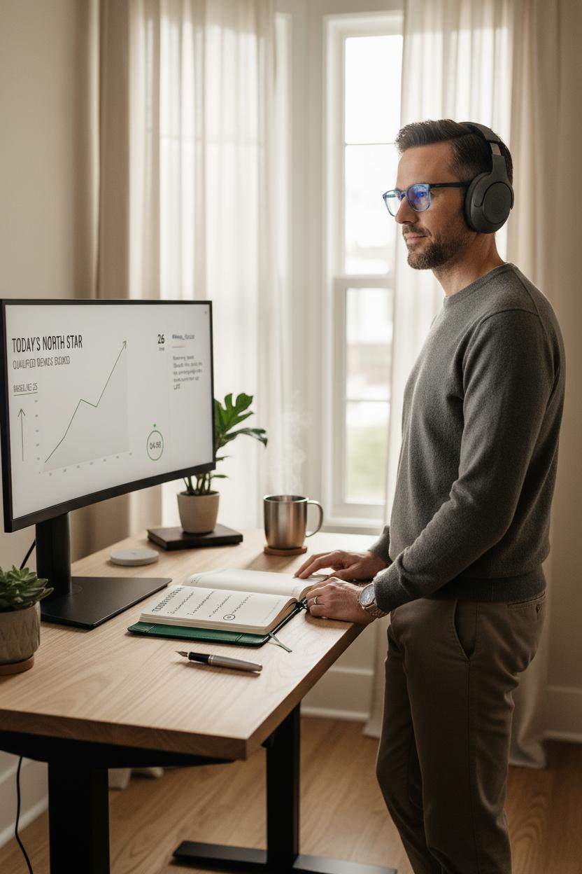 Make the setup feel cozy but deliberate. Stand at your standing desk, slip on blue light glasses, and do a two-minute dashboard glance—no deep dive, just enough to confirm your North Star. Pop on noise cancelling headphones and play a single focus track while you brainstorm three micro-actions that could move the number: a crisp email to unblock a partner, a 15-minute call with a customer, a quick tweak to pricing copy. Circle the easiest, set a five-minute timer, and do it before anything else. These tiny bets are your favorite productivity tips in disguise; they compound fast, and they teach your team what “today” looks like. If it helps, share the KPI with a one-line note in Slack—context is a leadership habit that multiplies effort. Keep your scoreboard visual but friendly: one line, one arrow, one win. When the day inevitably throws curveballs, come back to the page, add a checkmark, and choose the next smallest lever. Recalibrate weekly, not hourly. Over time you’ll feel it: less noise, more signal, and a gentle rhythm that makes room for real progress. That’s the quiet luxury of a well-designed CEO lifestyle—where a single, well-chosen metric turns a scattered morning into a guided, graceful climb.