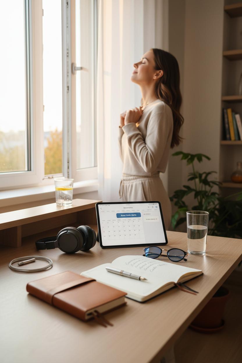 Think of this as the calm, curated doorway into your day—the kind of CEO lifestyle moment that makes the rest of your schedule feel lighter. Your 30 minutes starts softly: two minutes to hydrate and open a window for a breath of fresh air, then three minutes of simple breathing to wake up your focus. Sunlight on your skin, shoulders down, jaw unclenched—already a win. Next comes a gentle body warm-up for five minutes: hip circles, hamstring stretches, a few squats by your standing desk, or a brisk lap around the kitchen while the kettle heats. Add quiet, instrumental music through noise cancelling headphones and your brain slips into flow without chatter. This is a morning routine that doesn’t demand a personality transplant—just tiny, doable shifts that put intention in the driver’s seat.