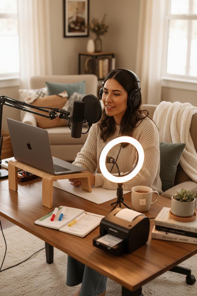 If you love telling stories, teaching what you know, or simply chatting with interesting people, a podcast is one of the coziest small online business ideas to try. It’s low-cost, portable, and perfect for anyone who wants to start an online business without being on camera every day. Begin with a simple setup: a reliable USB microphone (plug-and-play is your friend), a pop filter to soften those breathy p’s, and a pair of comfy closed‑back headphones. Record at your desk or kitchen table, and elevate your posture with a laptop stand so your voice projects clearly. Choose a quiet room and soften the space with pillows or a blanket over a chair to reduce echo—instant studio vibes. If you plan to share clips on social, add a ring light for video for a clean, flattering look. Free or affordable tools like Audacity, GarageBand, or Descript make editing approachable, and platforms like Riverside or Zencastr simplify remote interviews. Keep a small business planner nearby to map episode ideas, guest outreach, and release dates so your side hustle stays consistent.