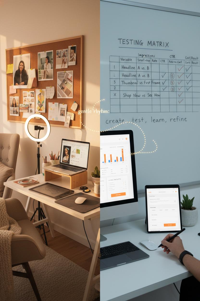 Think of your testing roadmap like styling a room: you start with a mood, layer textures, then tweak the details until it feels just right. Begin by gathering creative ad ideas into a simple swipe file—screenshots, saved Pins, captions that made you pause. Set up a cozy creation corner so production is easy: a ring light for soft, flattering videos, a laptop stand to keep posture (and edits) on point, a wireless mouse for speedy cuts, and a tidy desk organizer so props and cords don’t hijack your flow. In that calm corner, record three quick variations for social media advertising: one with a bold hook in the first two seconds, one showing the product in action, and one that leads with a promise or benefit. Keep the copy crisp, the visuals close-up, and the vibe true to your brand.