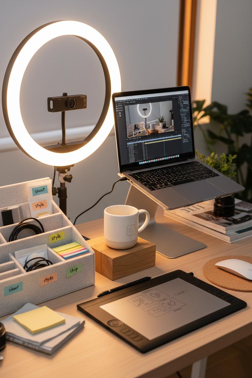 Production Toolkit: Ring Light, Laptop Stand, and Desk Organizer for Smoother Shoots