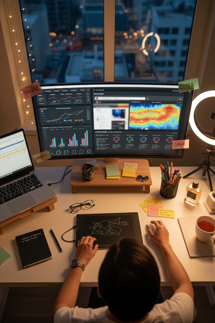 Lean into tactile, real-life visuals that feel saveable. Film a mini makeover featuring a ring light for flattering, true-to-life color, a laptop stand and wireless mouse to declutter the frame, and a desk organizer that makes the “after” look achievable. Layer in a creator POV: an over-the-shoulder sketch on a graphic tablet, a quick time-lapse, a one-line caption that reads like a note to a friend. Ad design tips that quietly boost trust—consistent lighting, crisp audio, warm neutrals with a pop color on the CTA—turn a simple story into a bookmark-worthy post. End with a micro-CTA that mirrors intent: “Steal this setup,” “Start your 10‑minute reset,” or “Build your calm desk.”