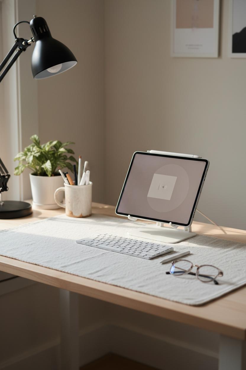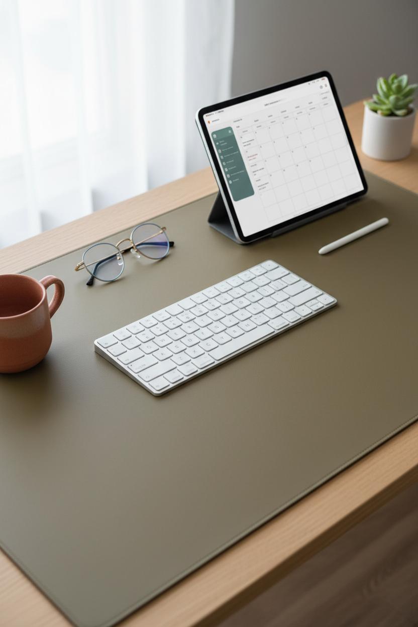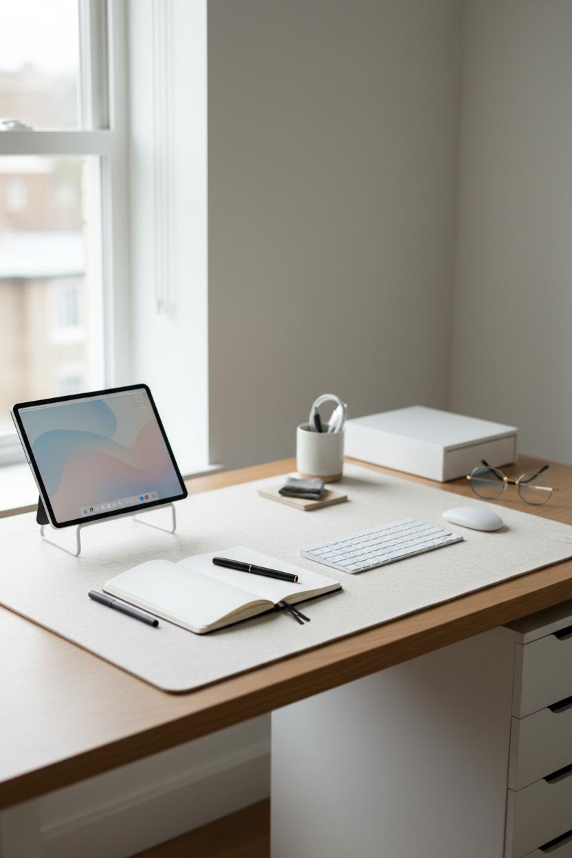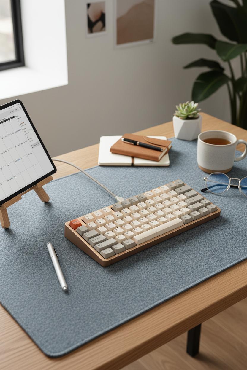 Size matters, too. An oversized mat frames your tools and creates intentional negative space, instantly tidying visual noise. It corrals your bluetooth keyboard, stylus pen, and notepad into one cohesive zone, and visually anchors a tablet stand so the whole arrangement reads as deliberate. Look for stitched edges to prevent curling, and choose finishes that are sponge-wipe friendly if you’re a daily coffee sipper. The right texture and color quietly guide your focus, support your digital planner ideas, and make your creator desk setup feel like a sanctuary—a grounded, graceful base that lets your work (and your mood) breathe.